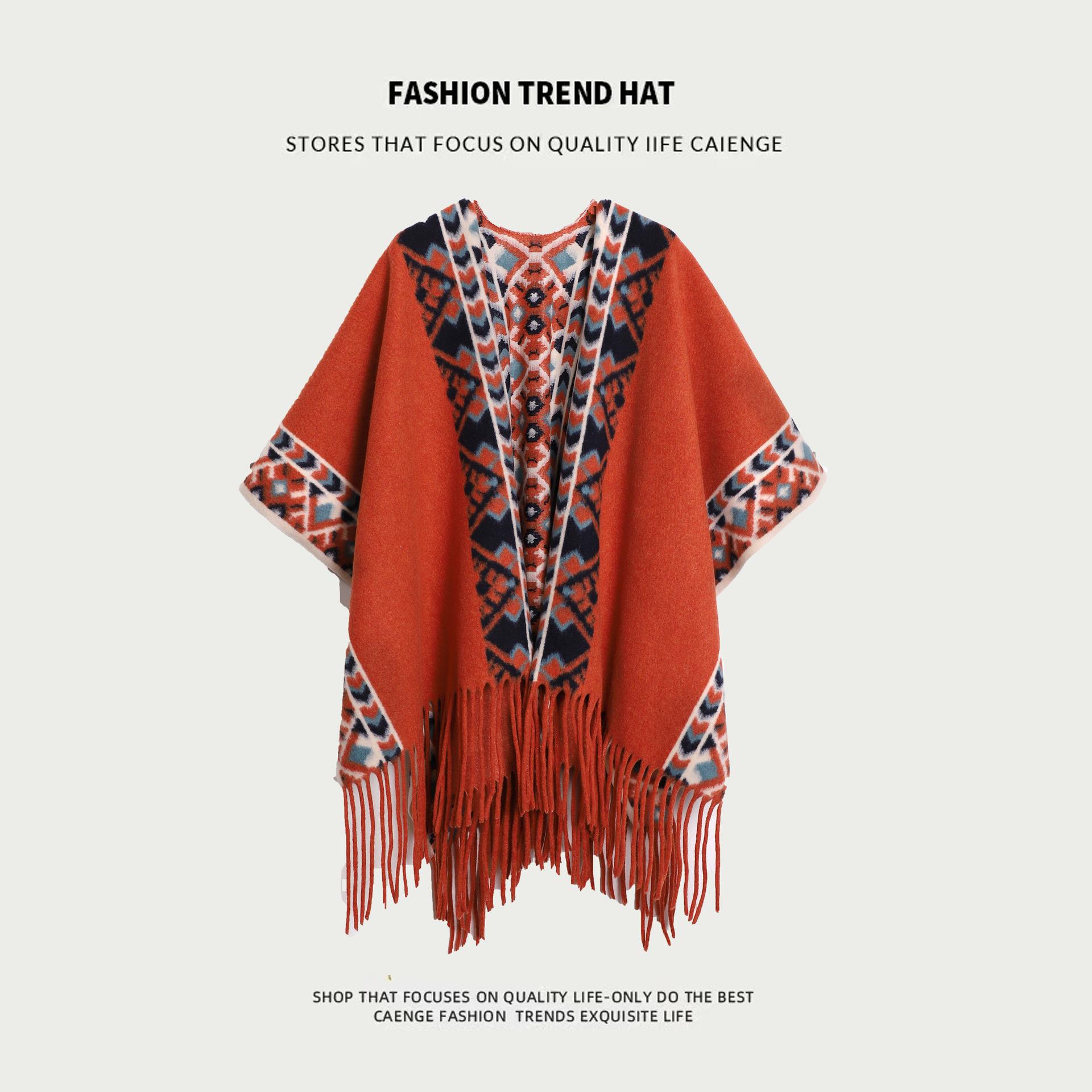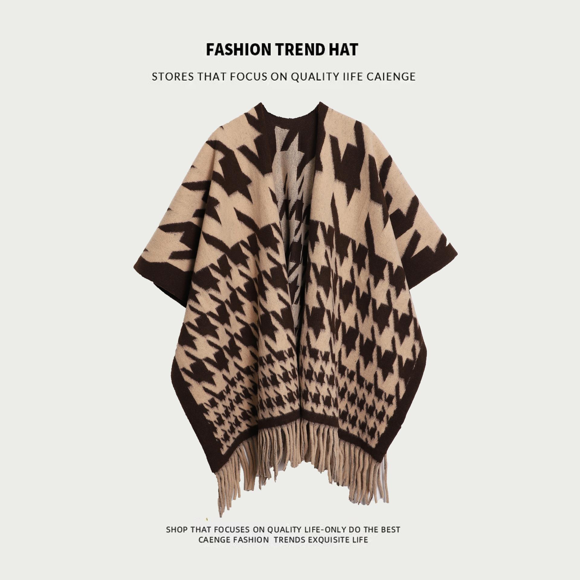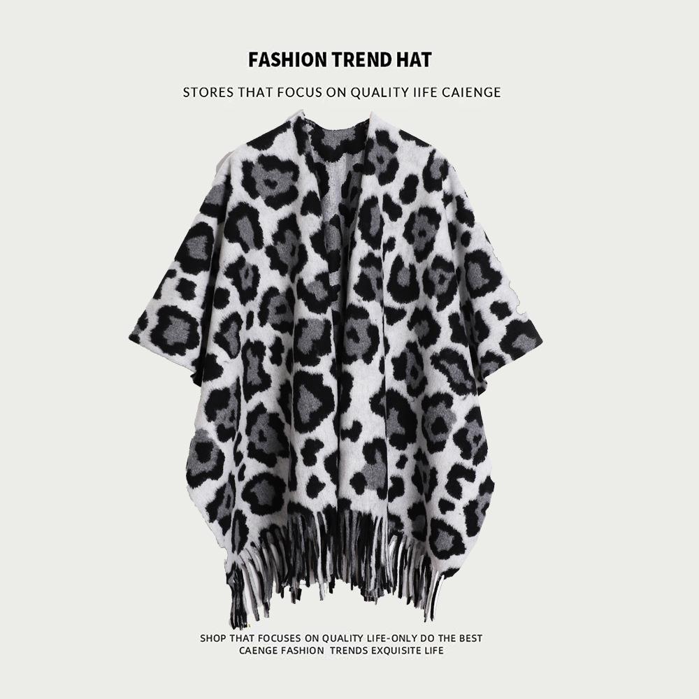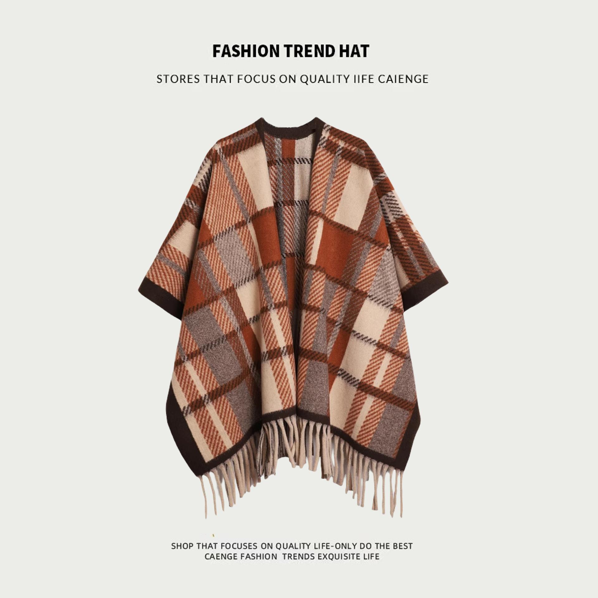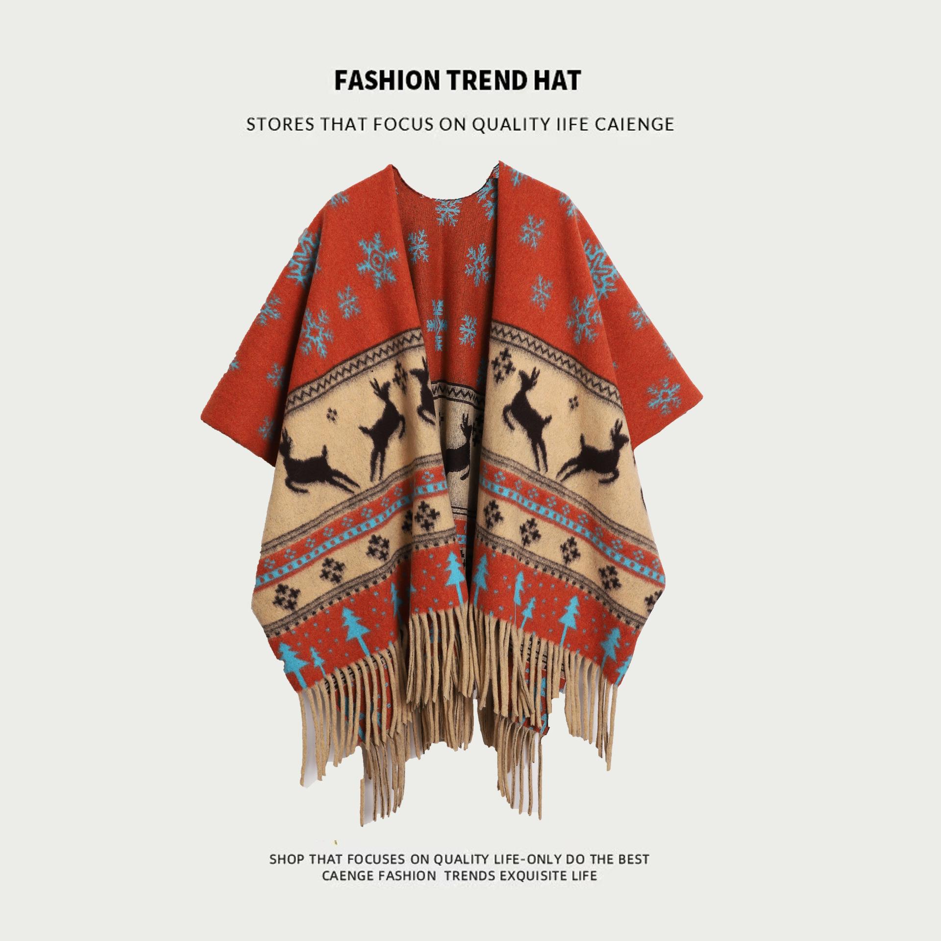 【百分百羊毛披肩女秋冬季超大加厚斗篷】外套旅游空调房开叉披风毛毯