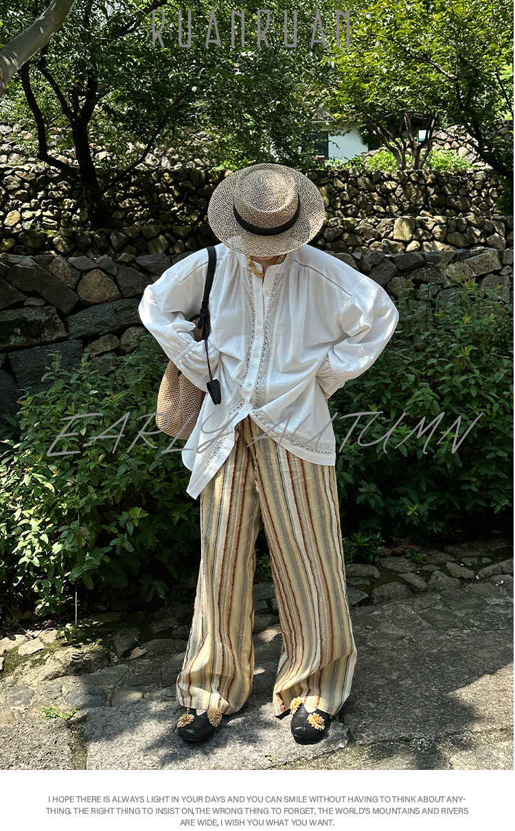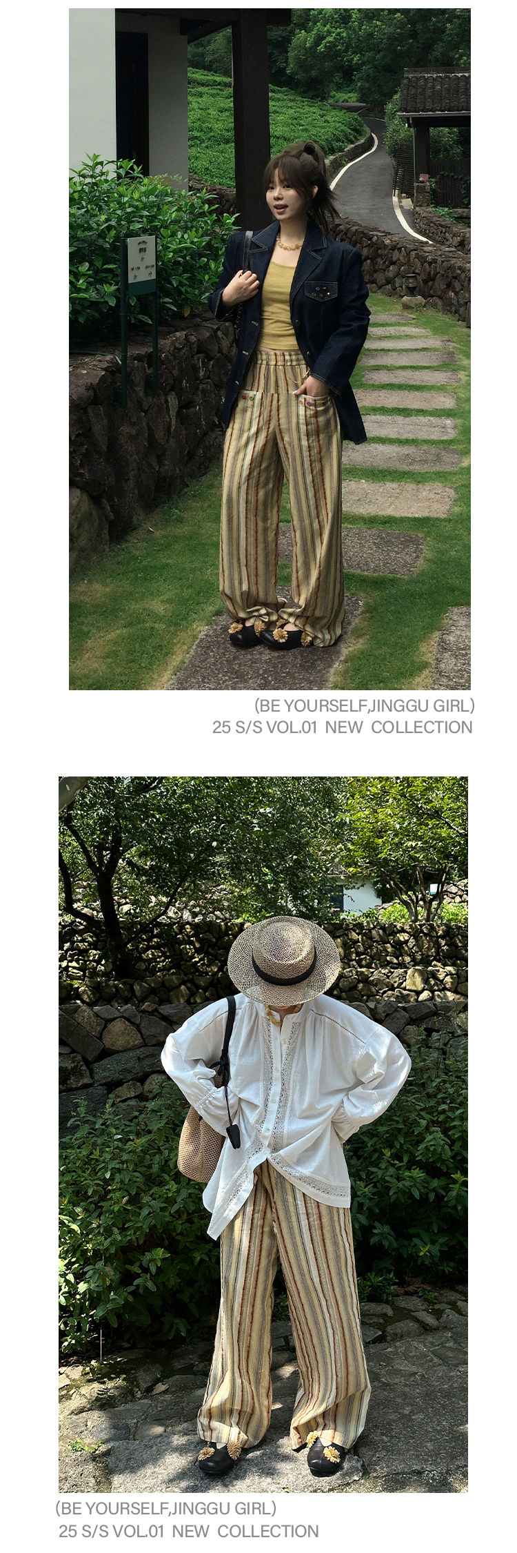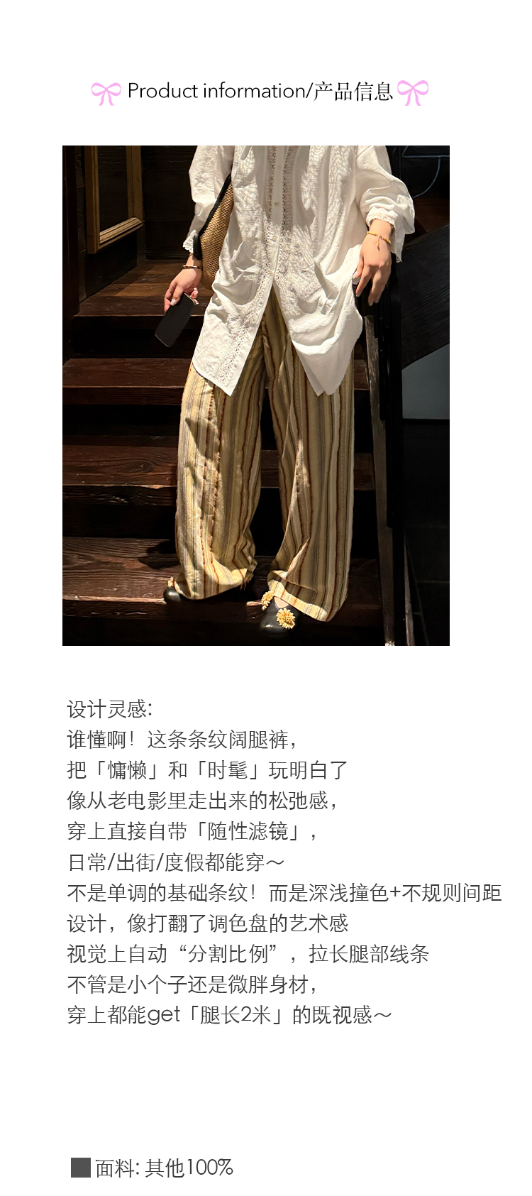 25AW上新 软软同款【梵高油画】复古时尚设计感垂感全腰松紧彩色条纹长裤