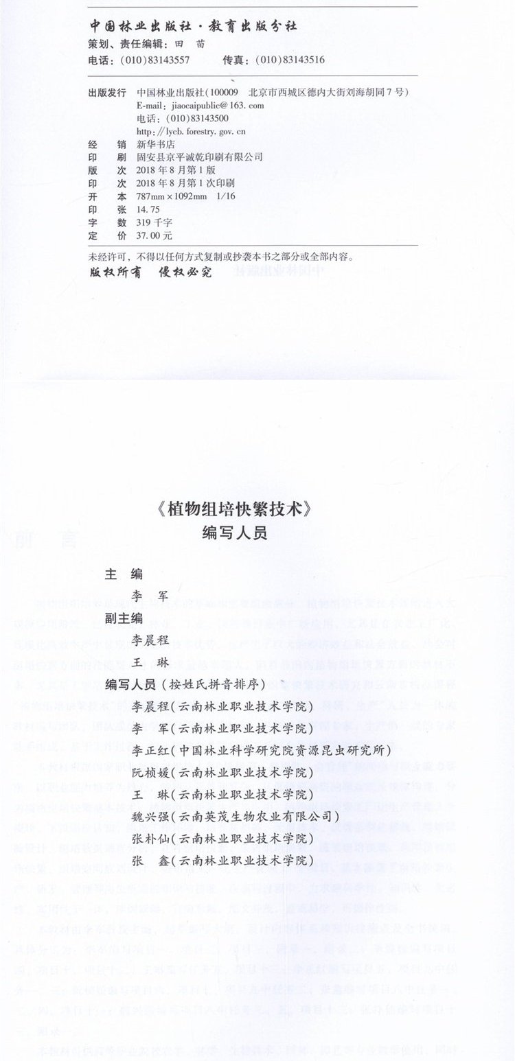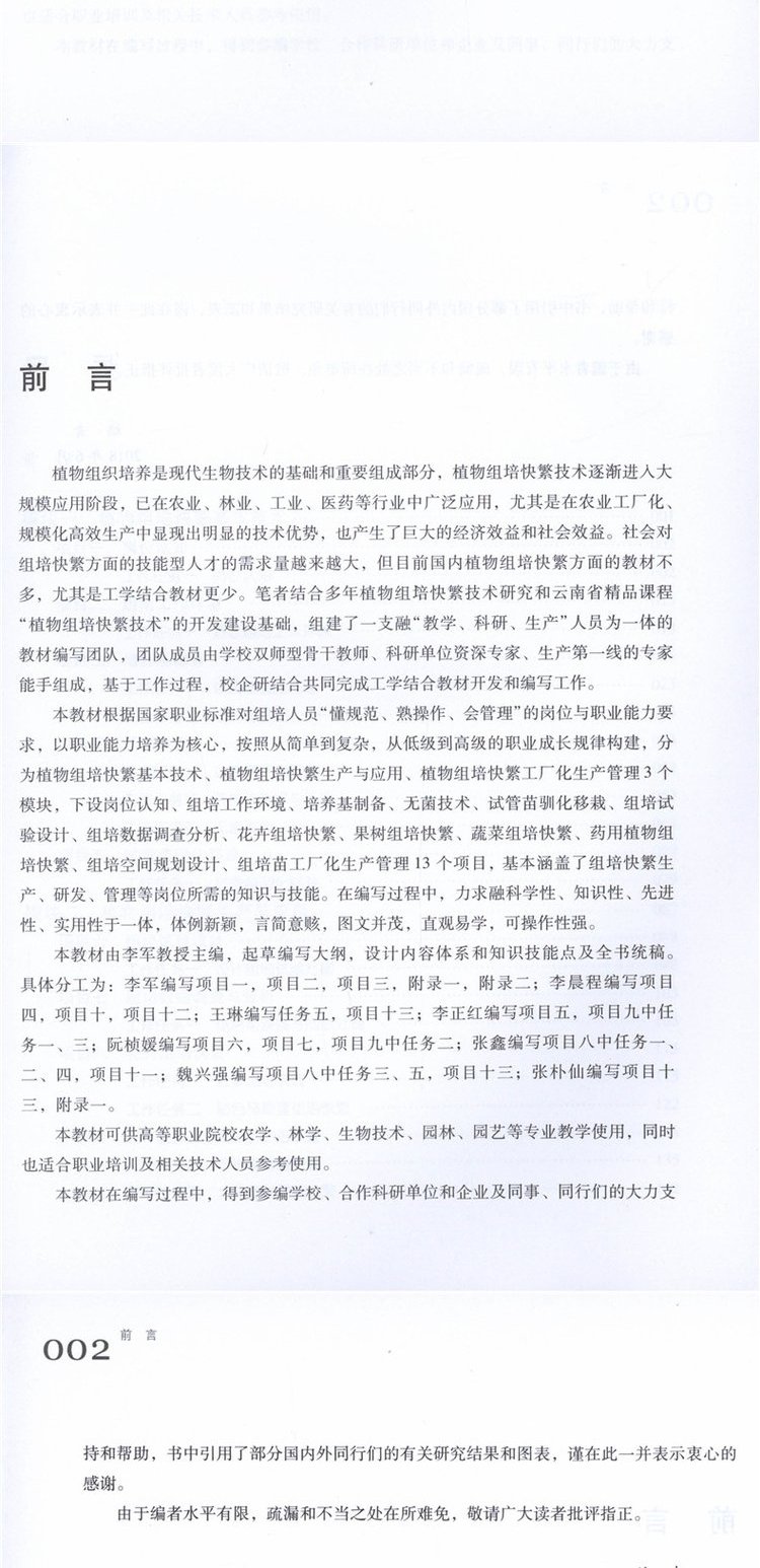 植物组培快繁技术 9657 李军 高等职业院校十三五规划教材 中国林业出版社 畅销书