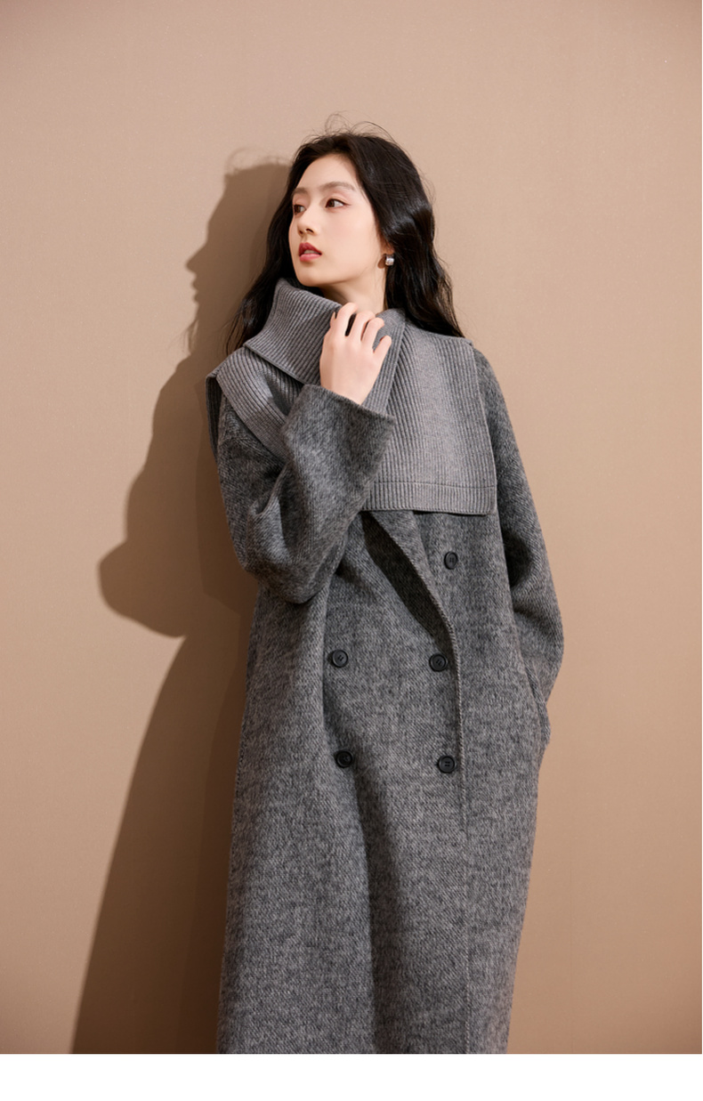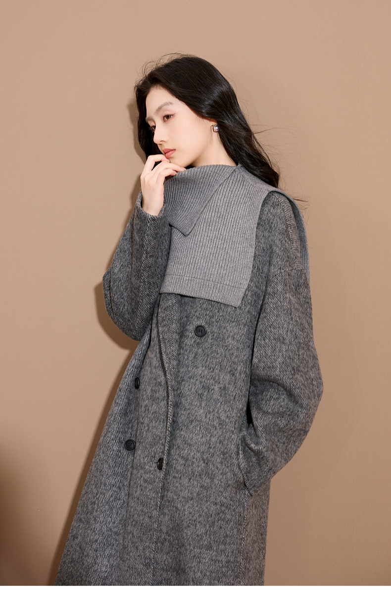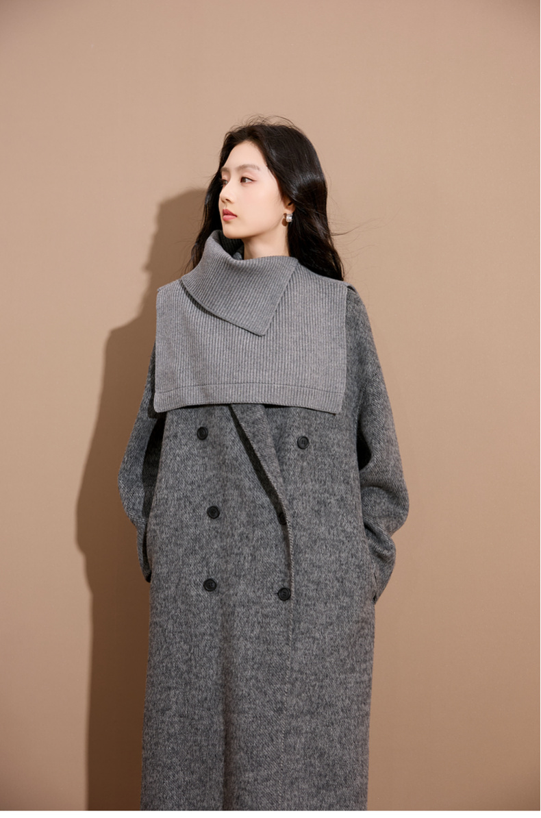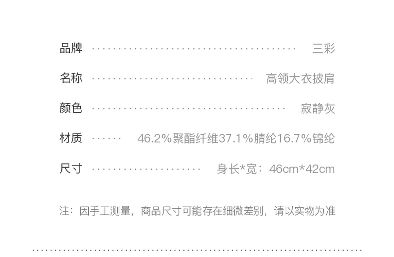 三彩2025新款纯色高领外搭大衣披肩针织保暖百搭女时髦氛围感短款