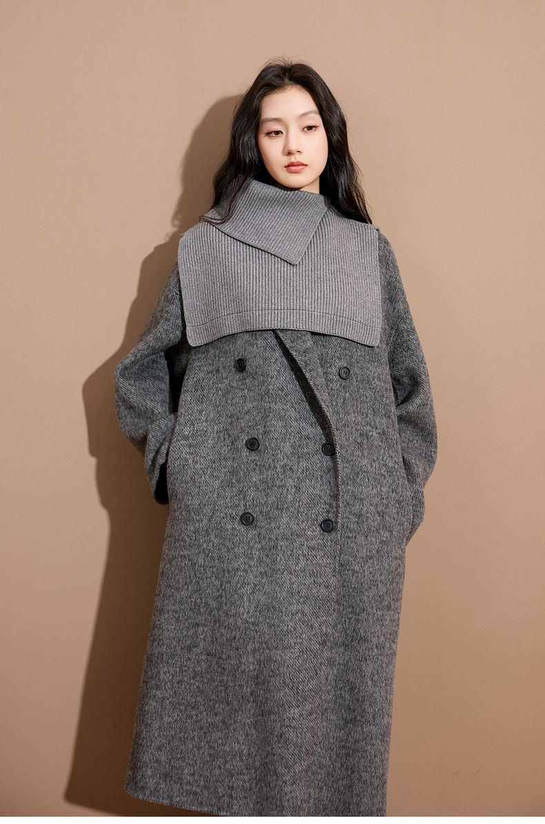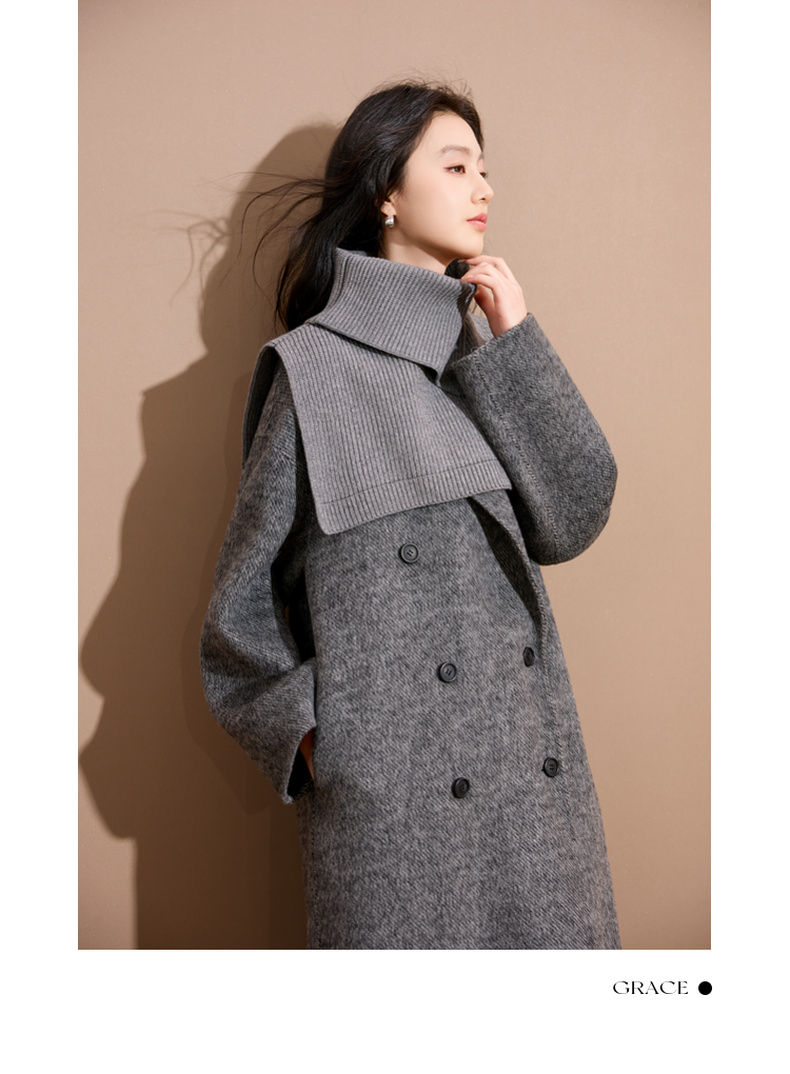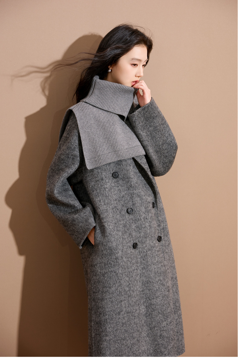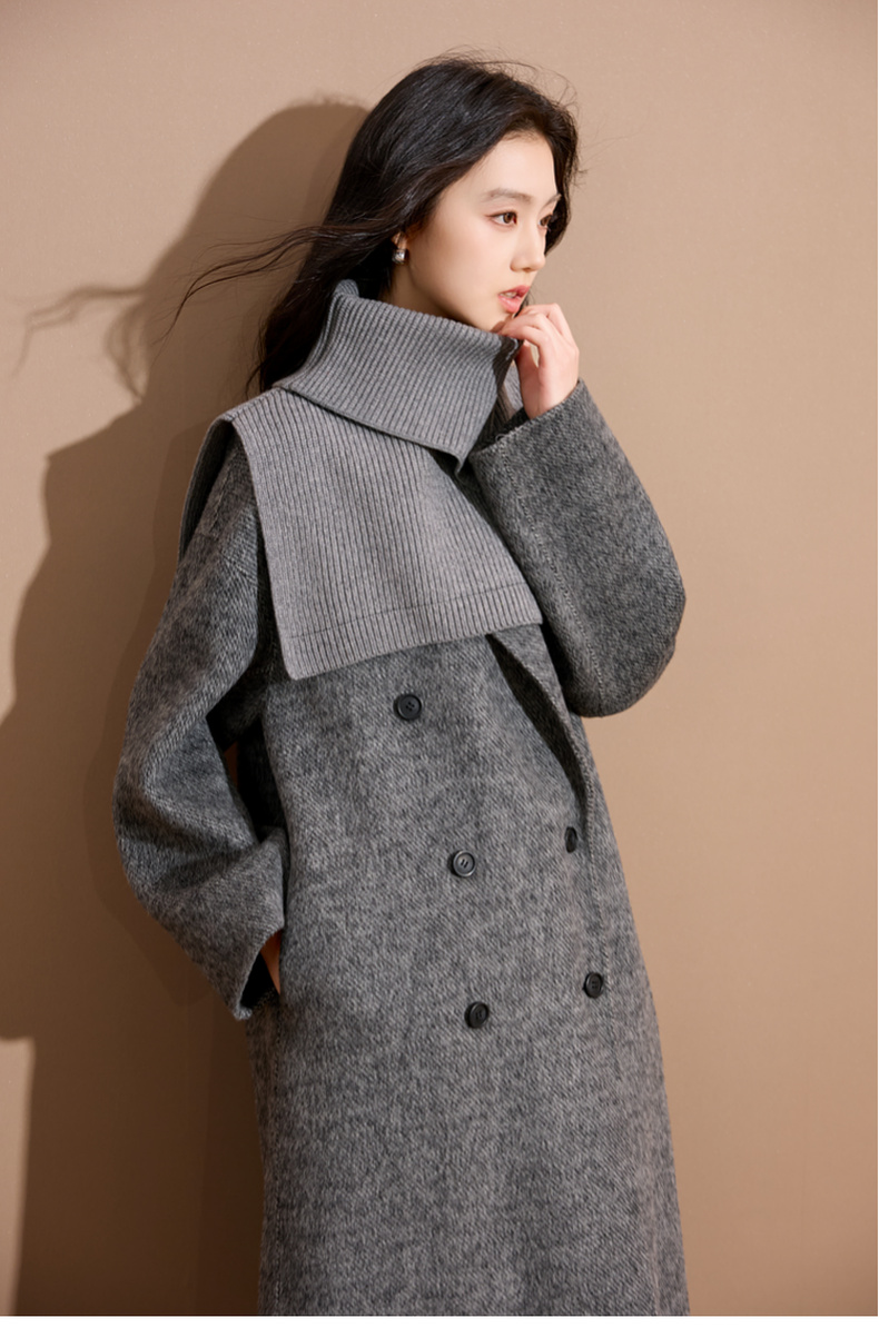 三彩2025新款纯色高领外搭大衣披肩针织保暖百搭女时髦氛围感短款