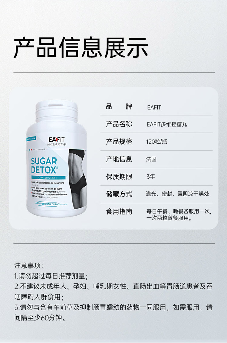 【限时特惠】法国进口EAFIT抗糖丸多链路抑糖控糖源头戒糖呵护糖损伤