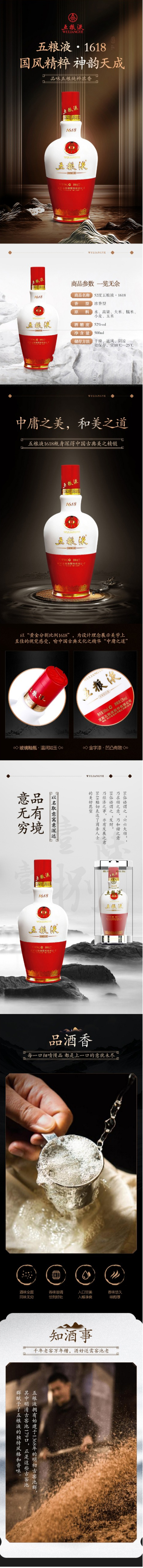 【样品清仓-全新】2018-2019年 五粮液 1618 浓香型白酒 52度 500ml 无原箱