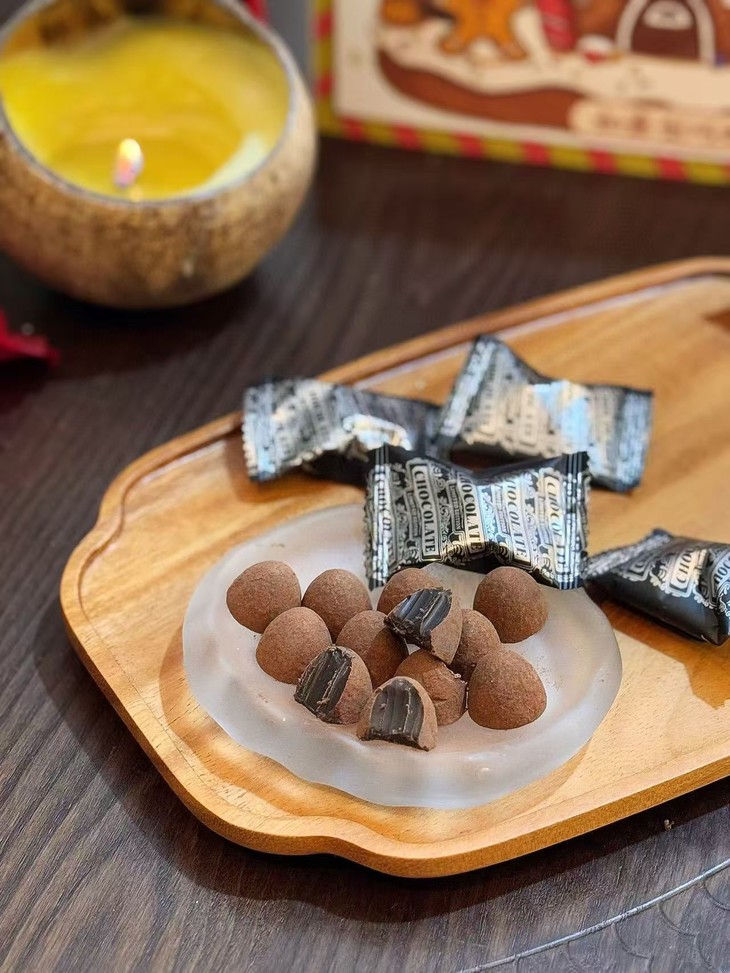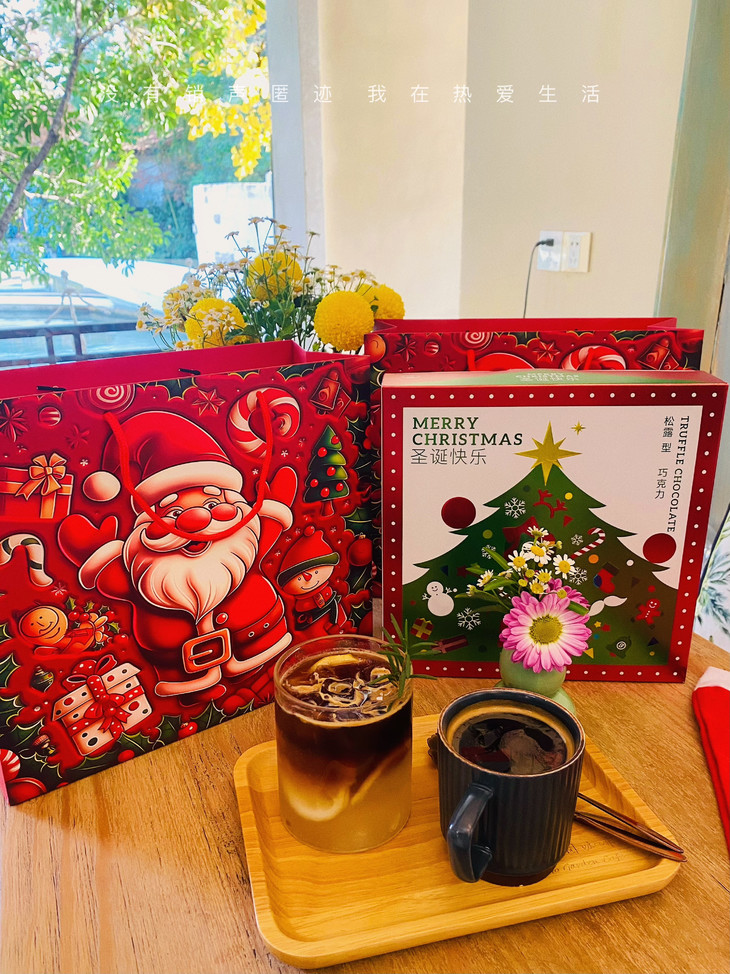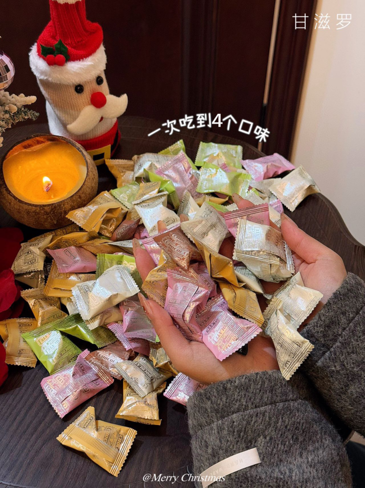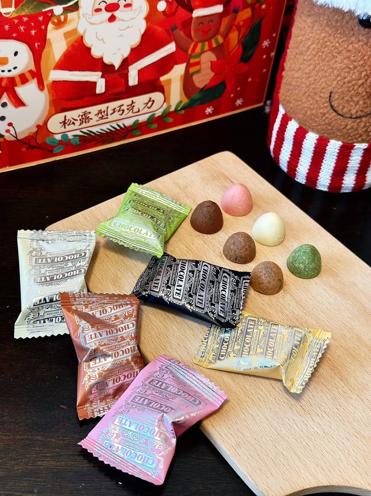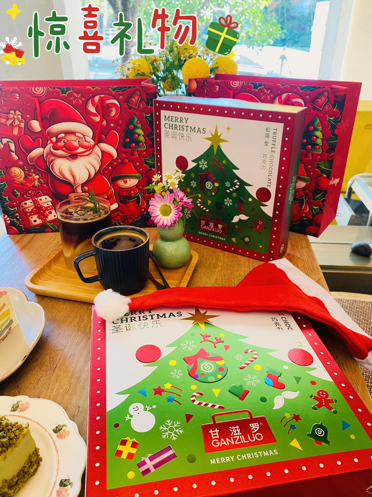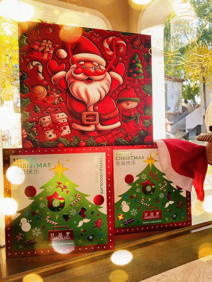 🎁: 专为圣诞节设计的精美礼盒 满屏的温馨圣诞树,礼盒 圣诞老人,浓浓节日的气息 礼盒里有四种不同口味 每一颗都细腻醇厚,层次丰富~ 不管是送礼还是分享,性价比高!