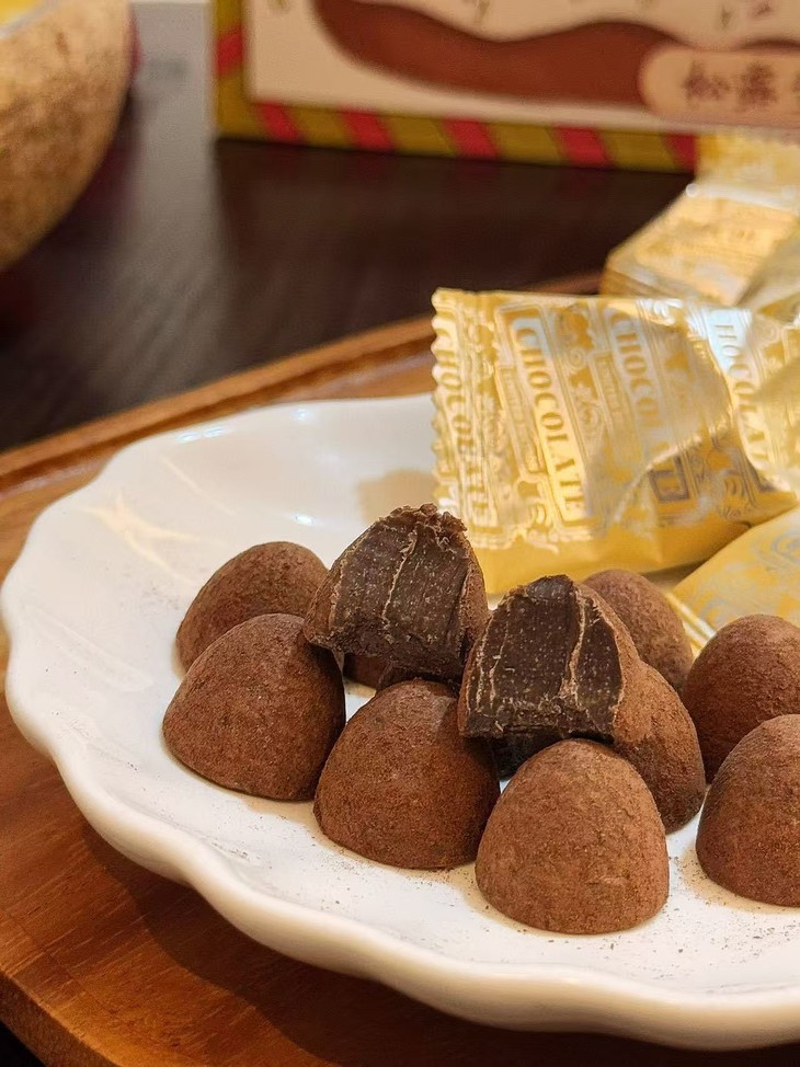 🍫原味 味经典的可可味微微苦 标准的松露形态 个大饱满 洒上细腻的可可粉 就像是刚出土带着泥土芳香的松露 质地刚好 软硬适中[哇]