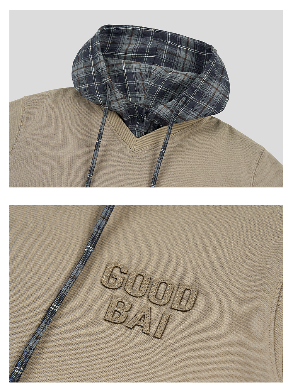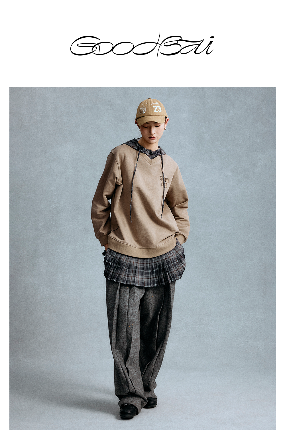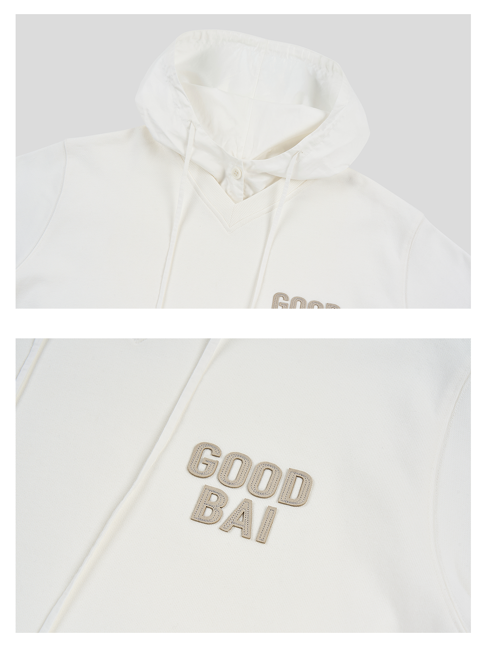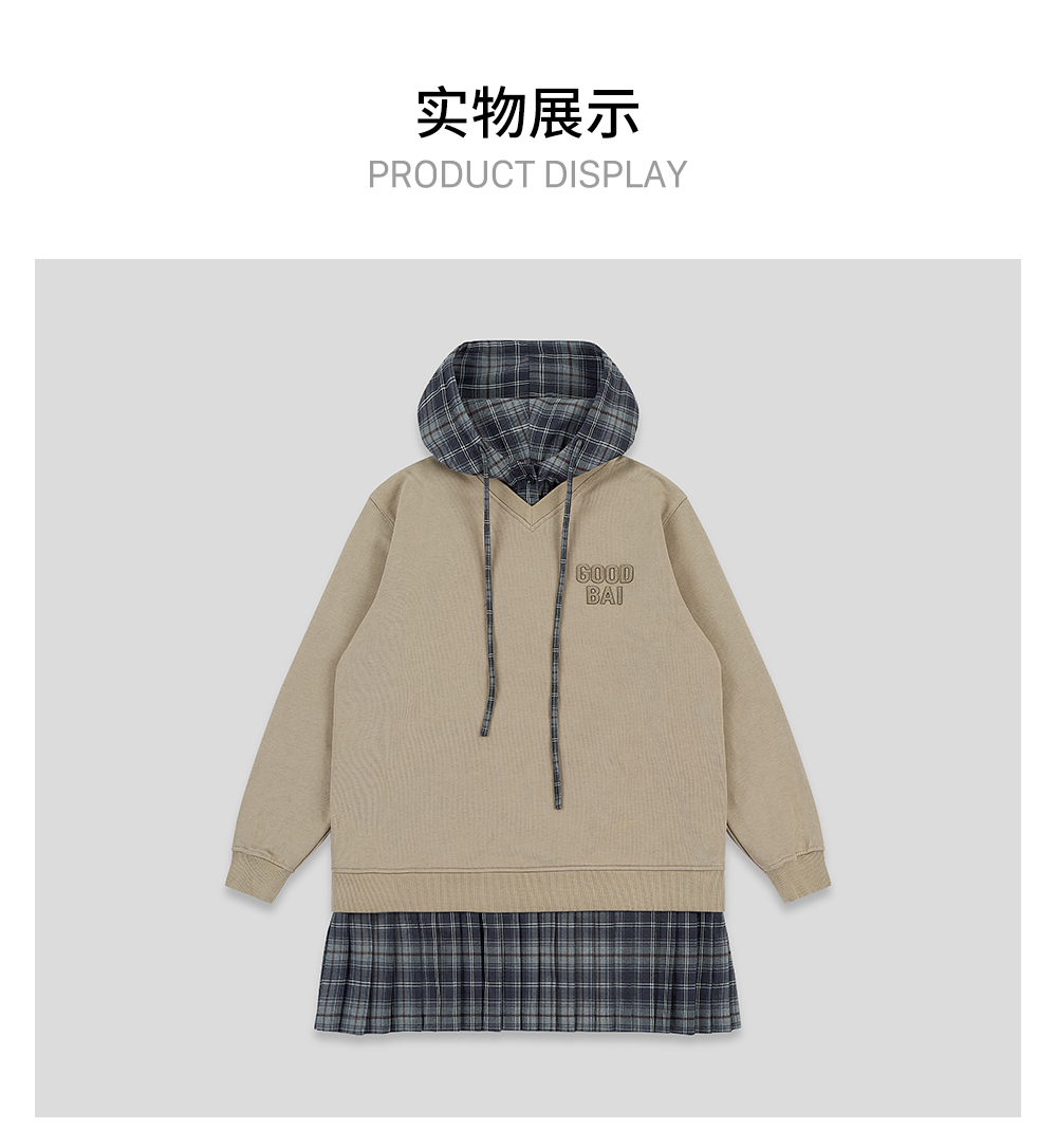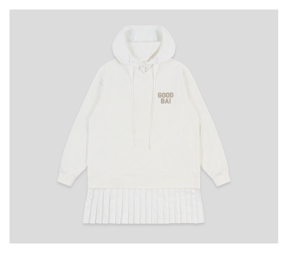 GOODBAI 粗体logo贴布绣拼接连帽抽绳卫衣连衣裙