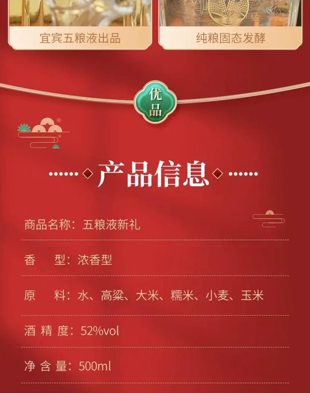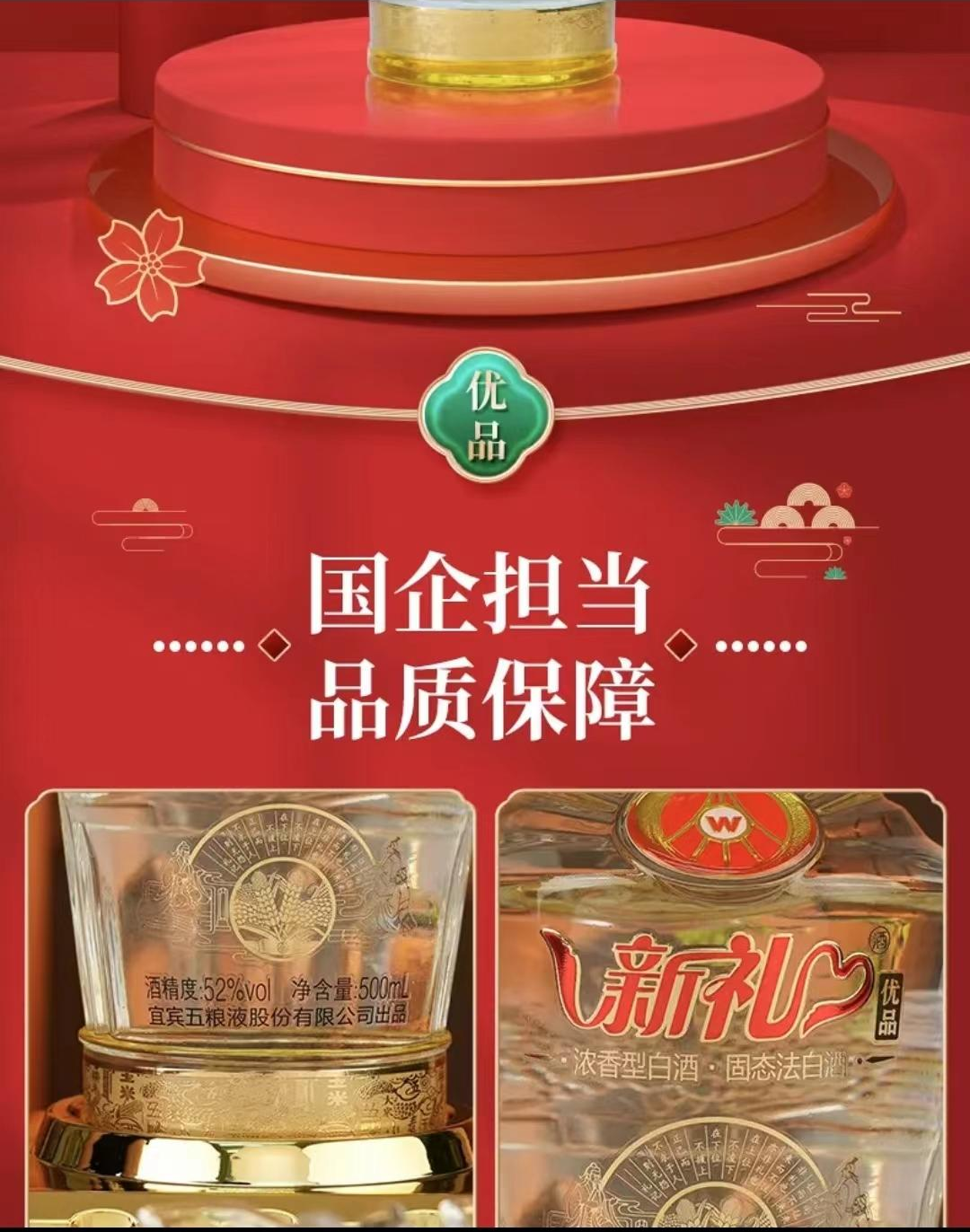 【超高性价比】五粮液股份出品 新礼优品 浓香型白酒 52度 500ml*6瓶整箱