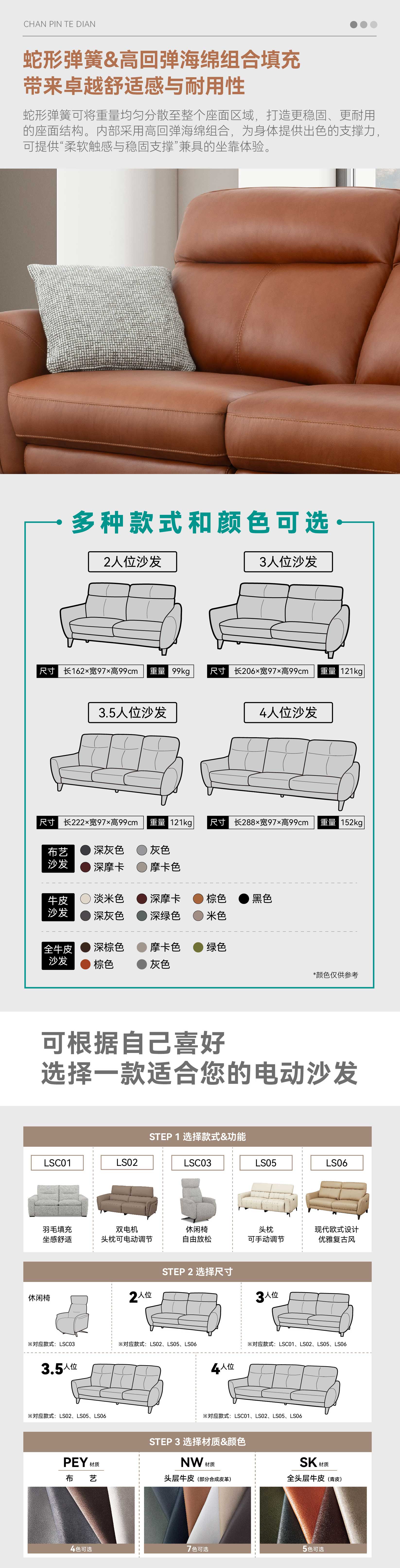 【家具】客厅大气高靠背牛皮电动沙发 LS06系列 NW定制