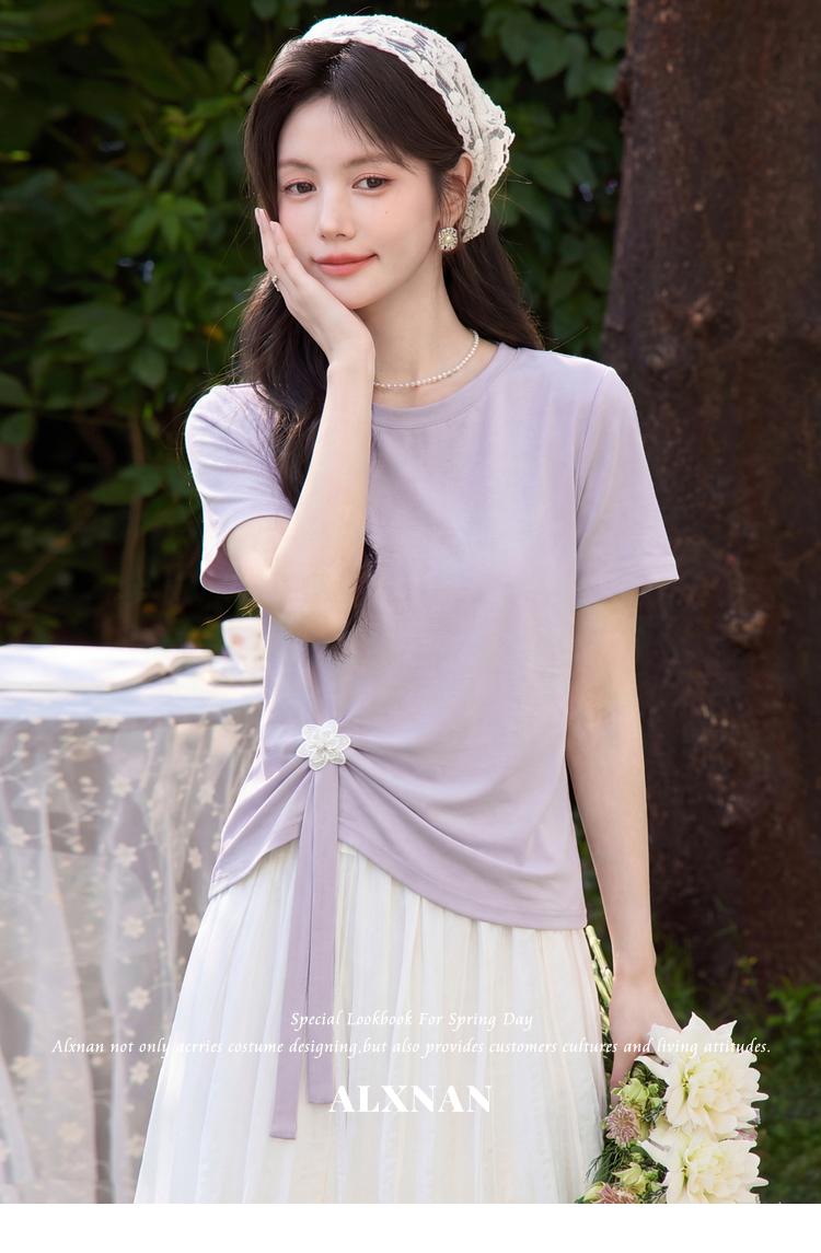 鹿向南「鸢尾来信」今年流行漂亮紫色短袖T恤女夏新款设计感上衣