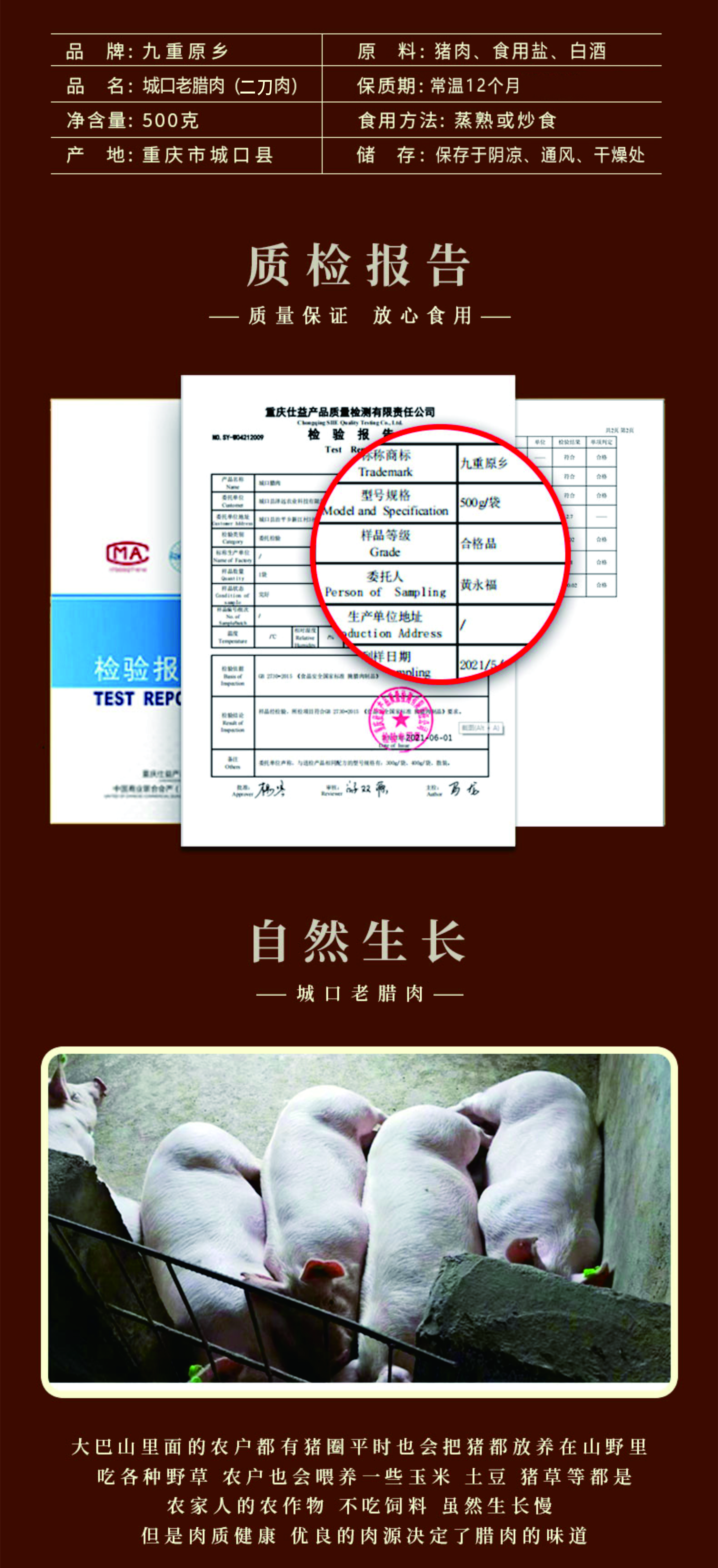 九重原乡重庆特产城口老腊肉二刀肉-传统工艺,柴火熏制