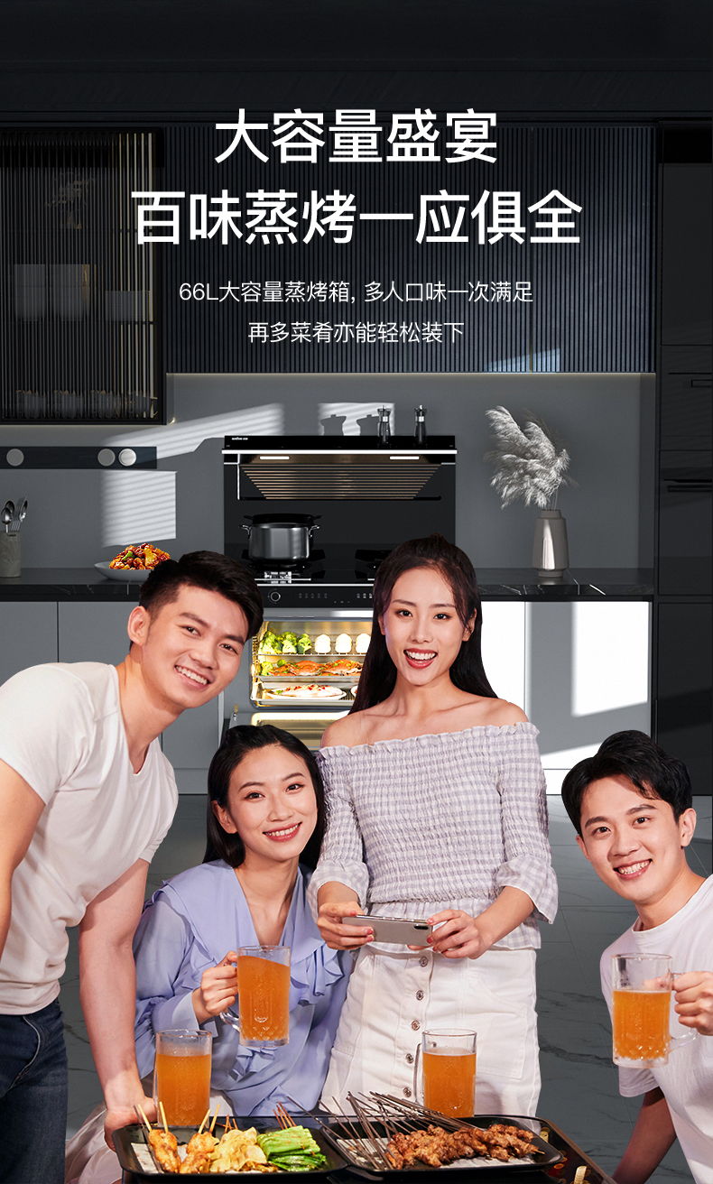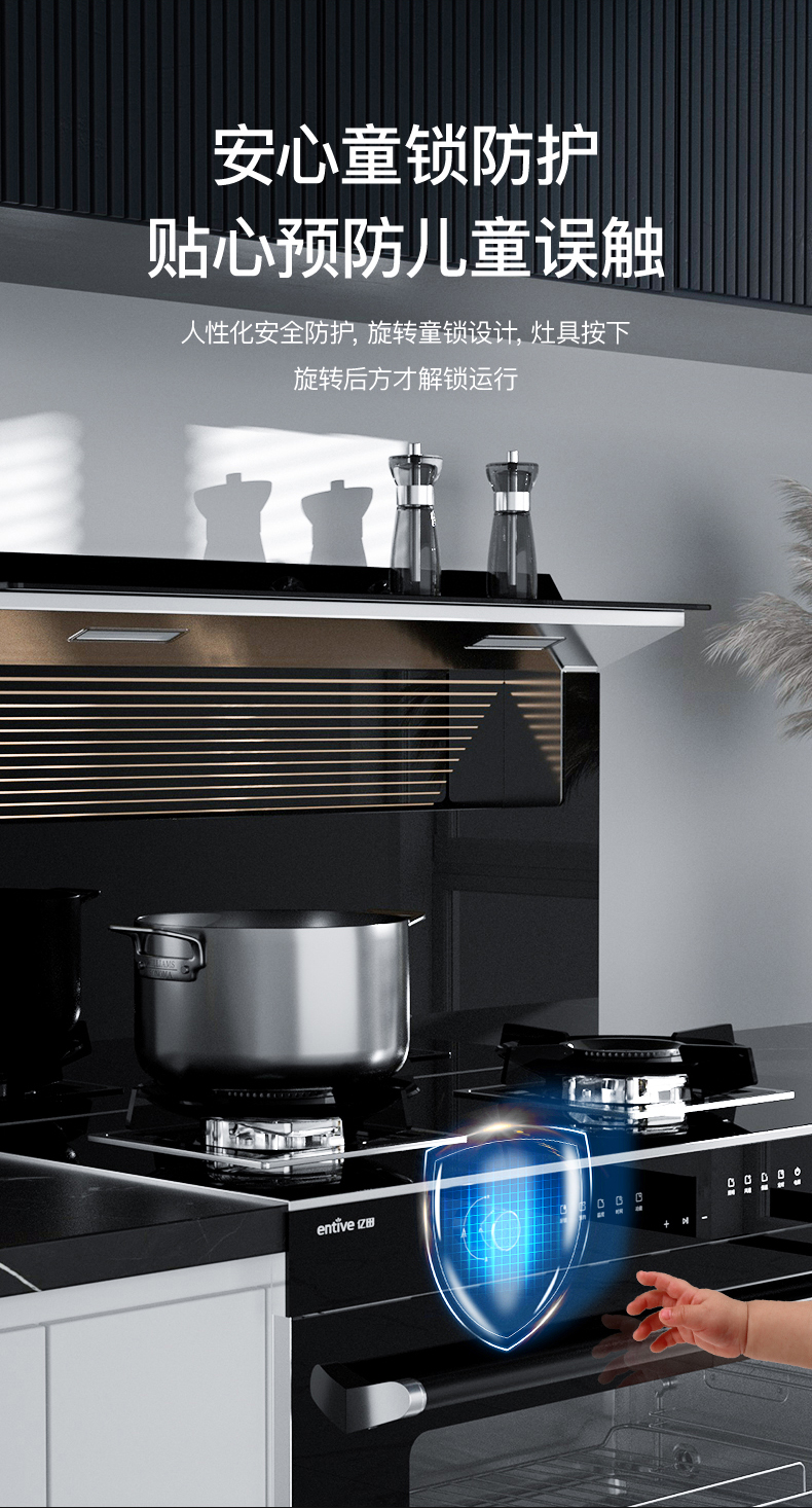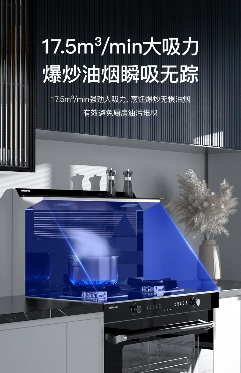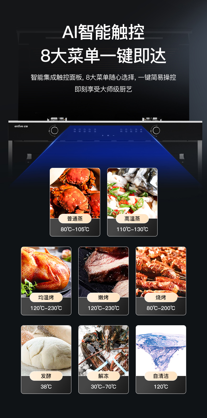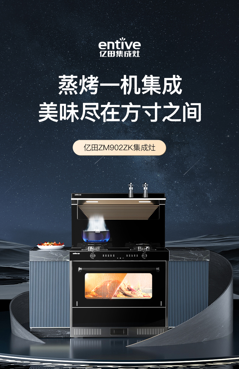 亿田(entive)ZM902ZK 集成灶蒸烤一体 家用蒸箱烤箱 黑晶工艺台面 17.5超强吸力 天然气
