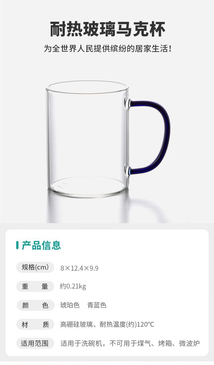 耐热玻璃马克杯 450ml 琥珀/青蓝