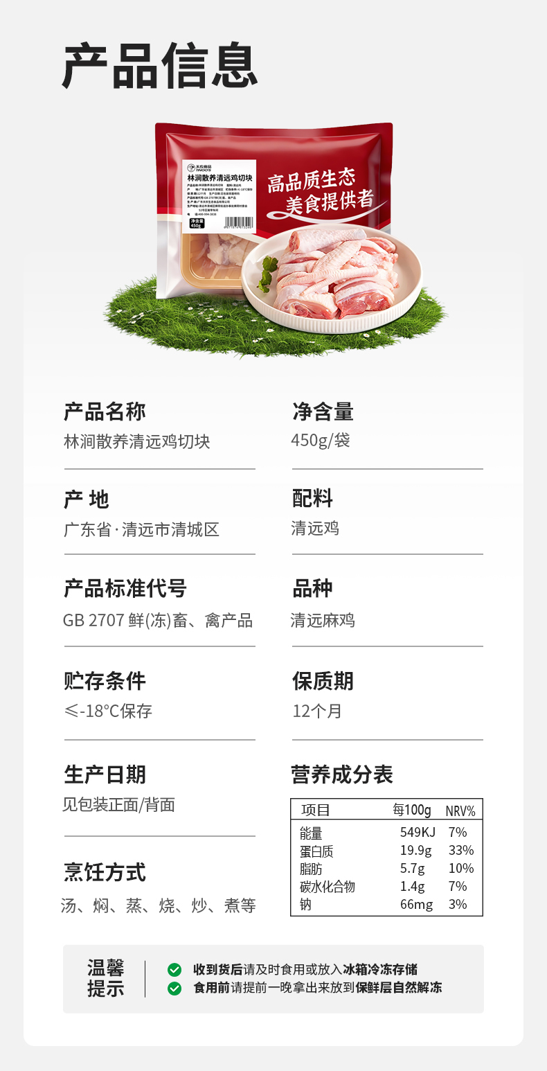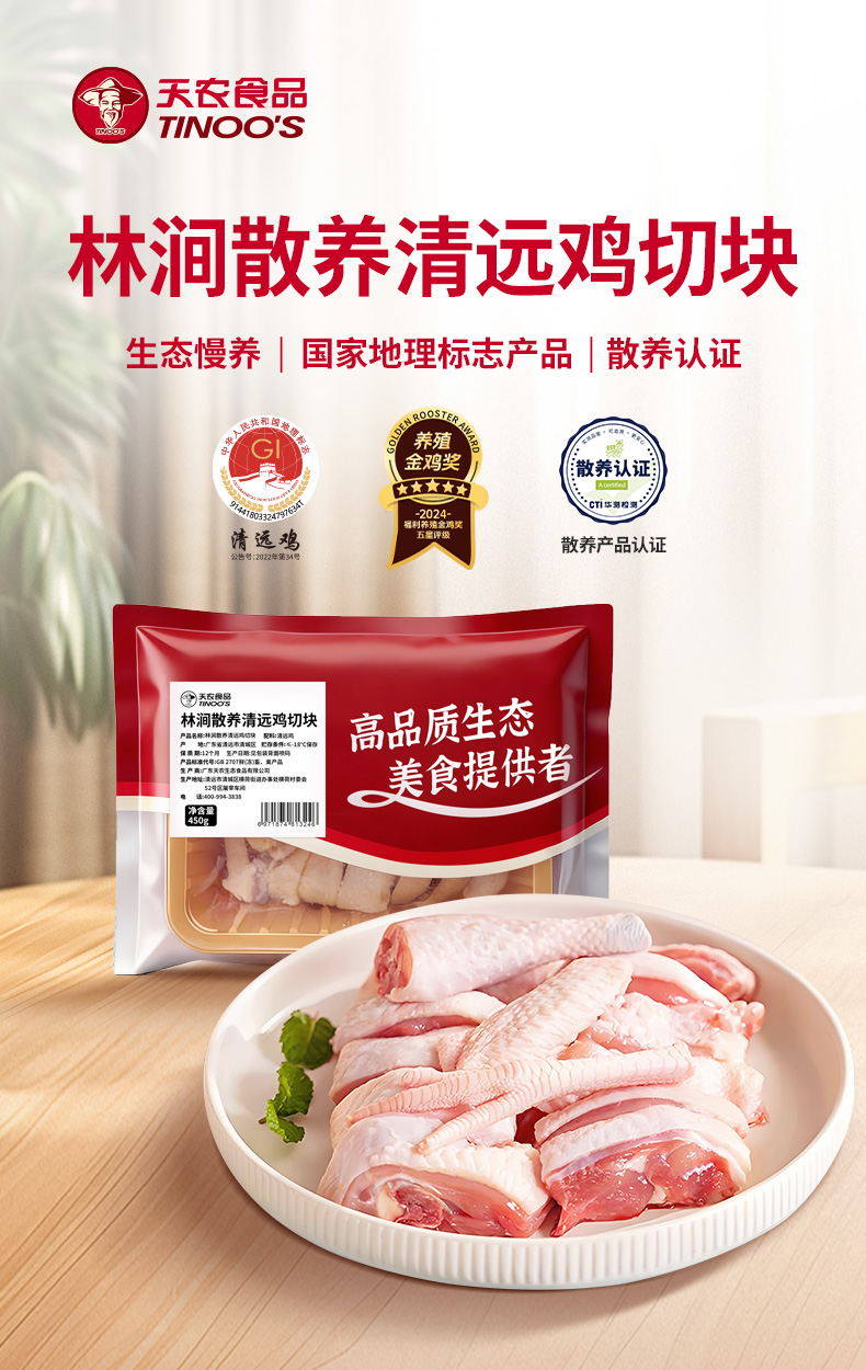 【免洗免切】天农食品 林涧散养清远鸡切块 450g*3盒 皮薄爽脆鸡肉细腻