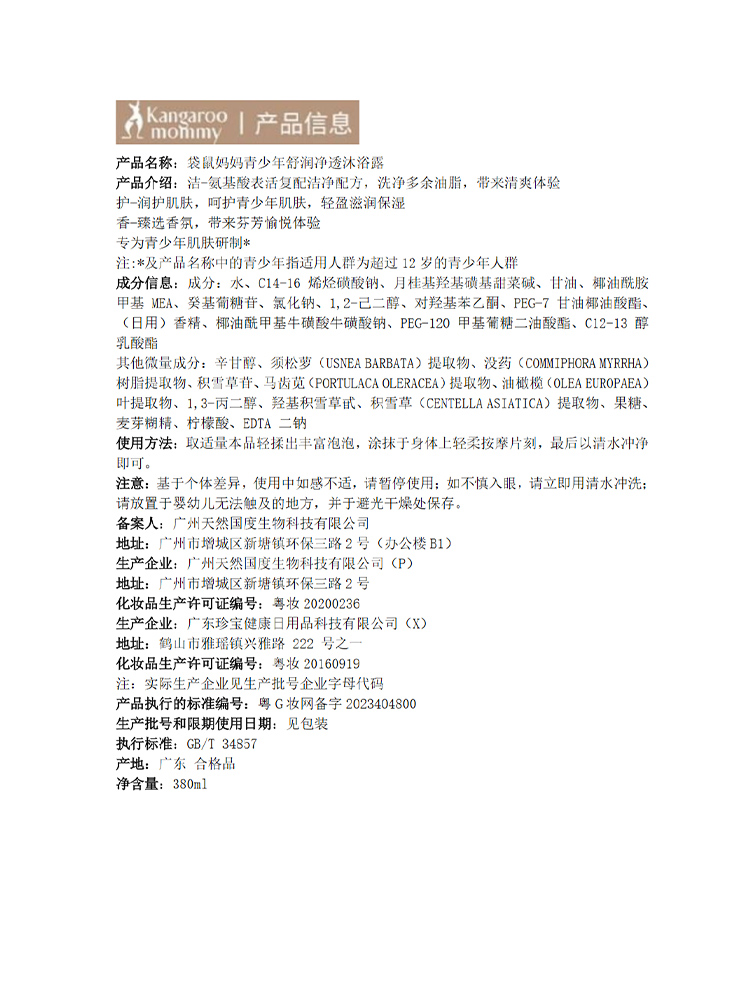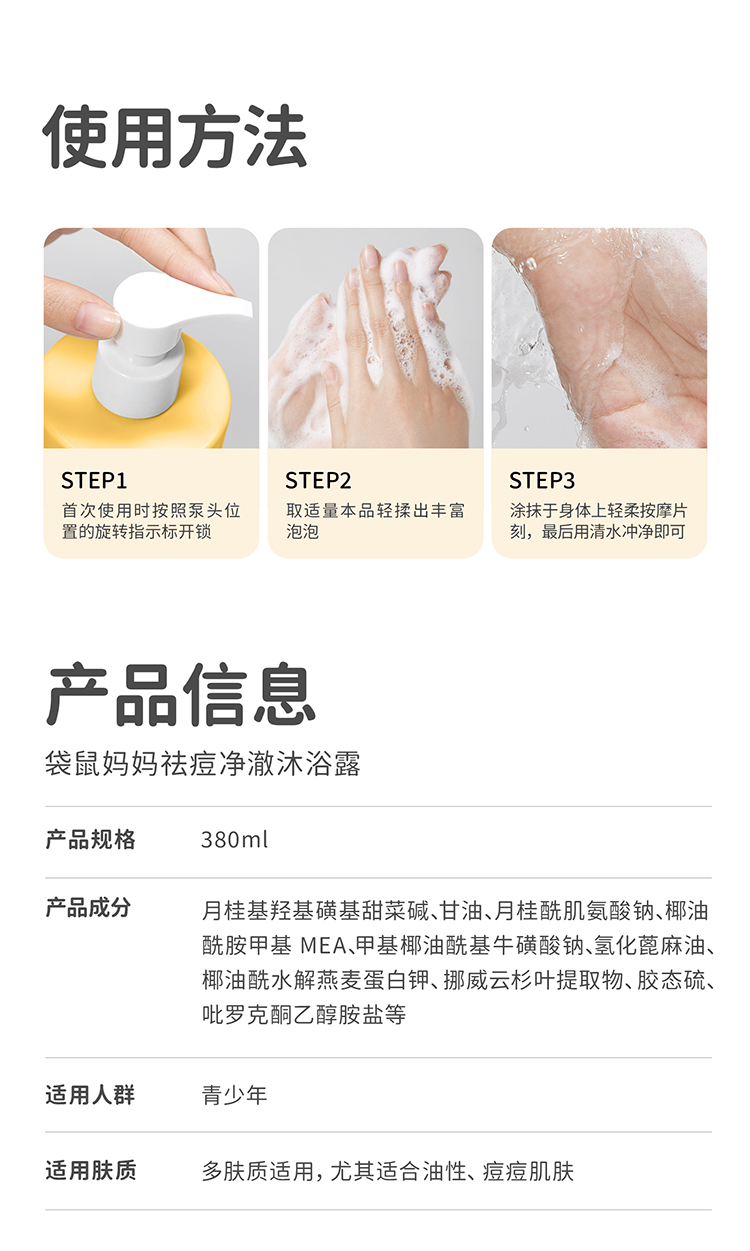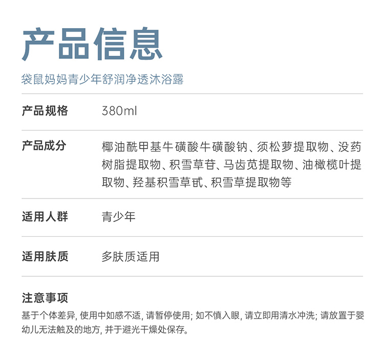 严选 | 袋鼠妈妈青少年沐浴露 380ml/瓶 舒润款/祛痘款