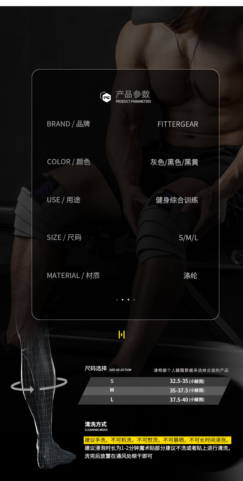 【执炼FitterGear】专用健身护膝男举重深蹲弹力绑膝FGCRHX