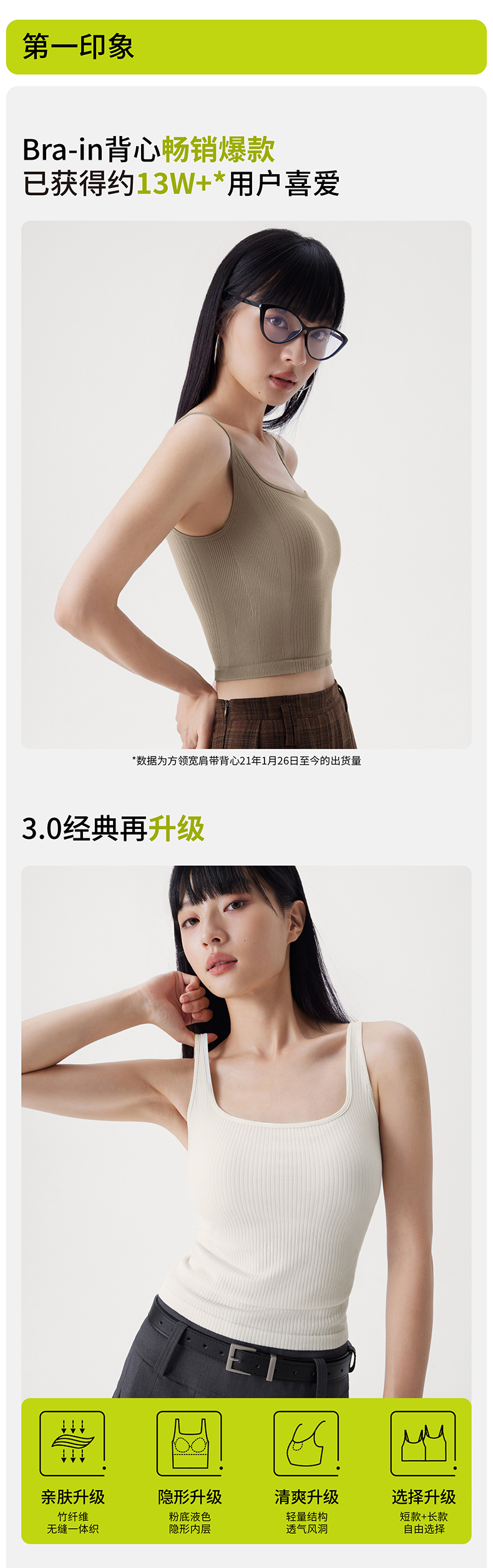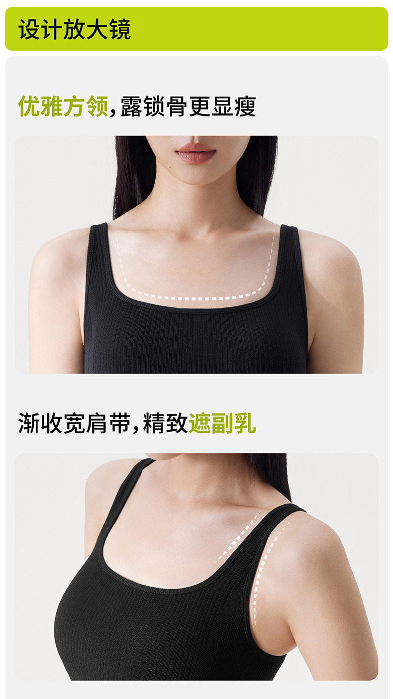 半练方领宽肩带背心3.0 TA037,文胸+背心合二为一的款式,自带胸垫,杯垫和胸型贴合也很紧密,舒适度极高