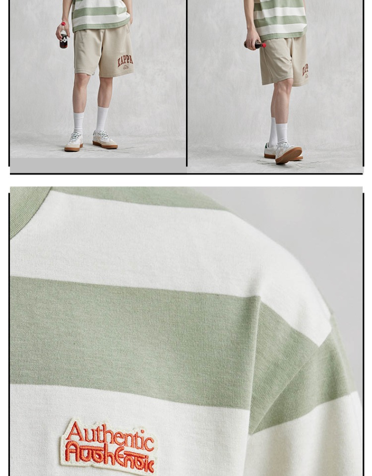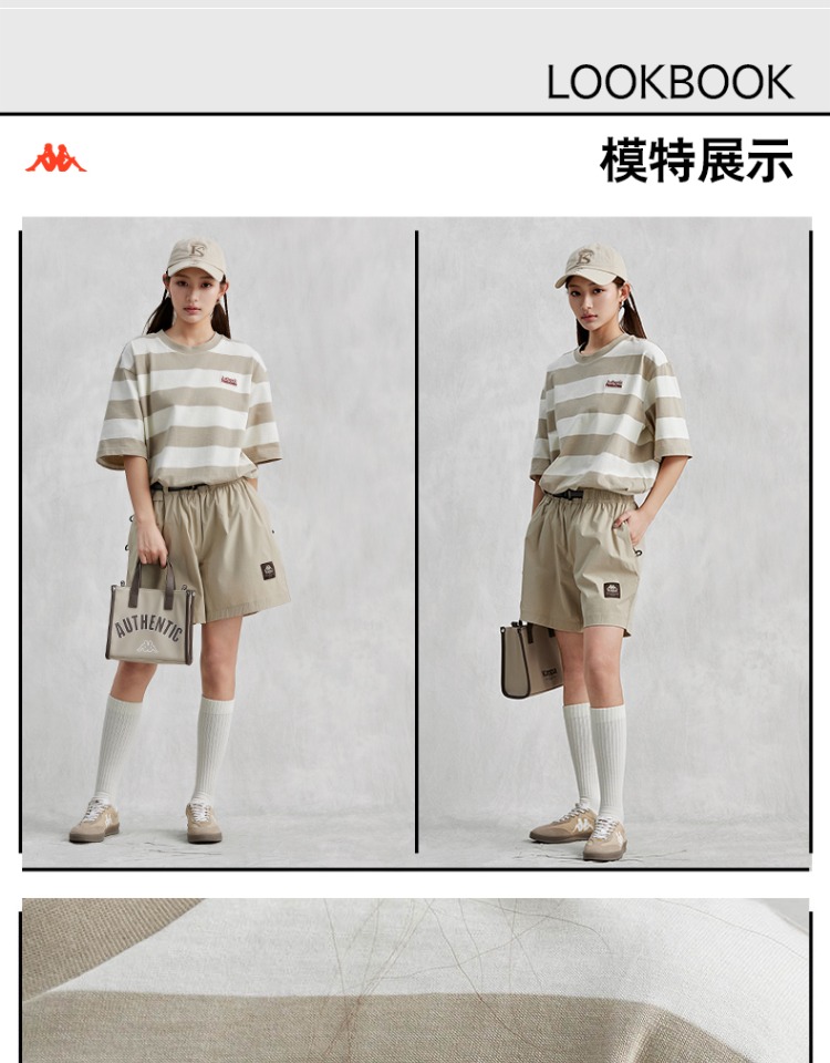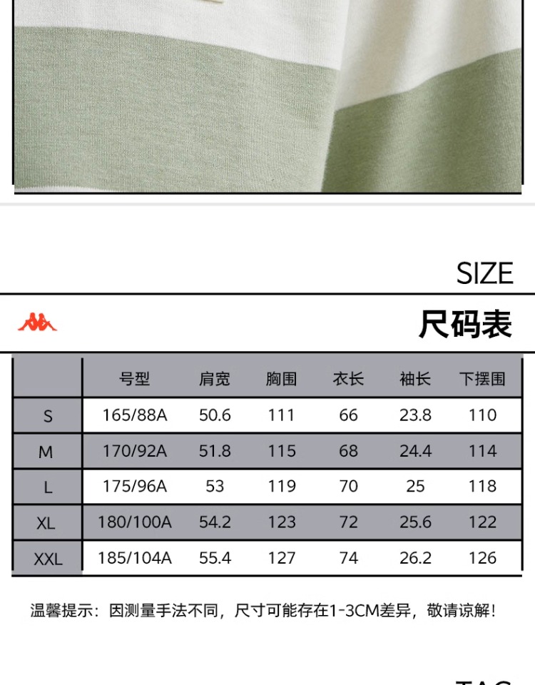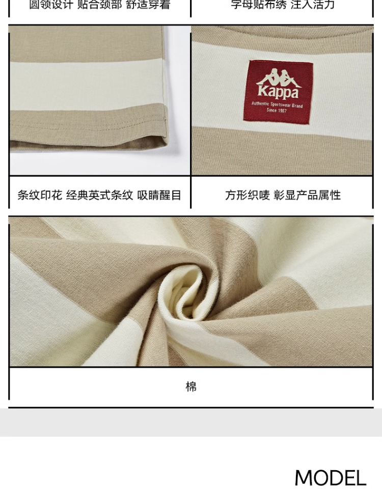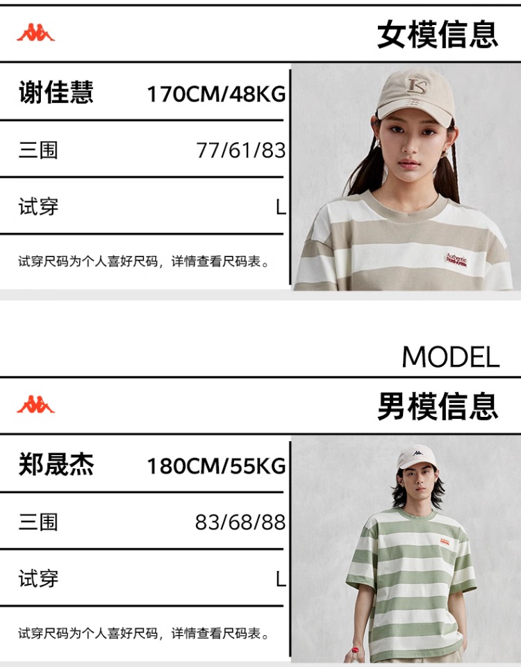 Kappa卡帕短袖2024新款情侣男女夏运动纯棉休闲T恤条纹撞色半袖K0EX2TD35D