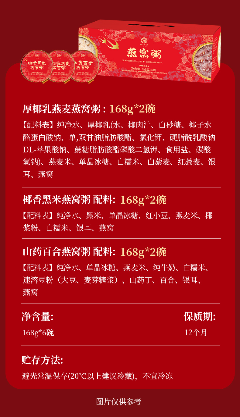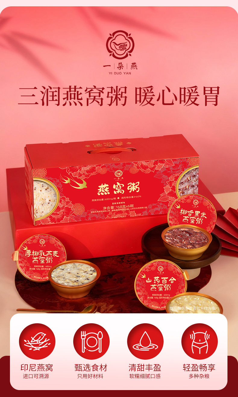 严选 | 一朵燕三润燕窝粥 168g*6碗*1箱 内含三种口味