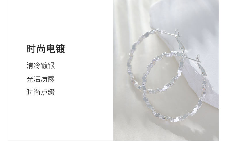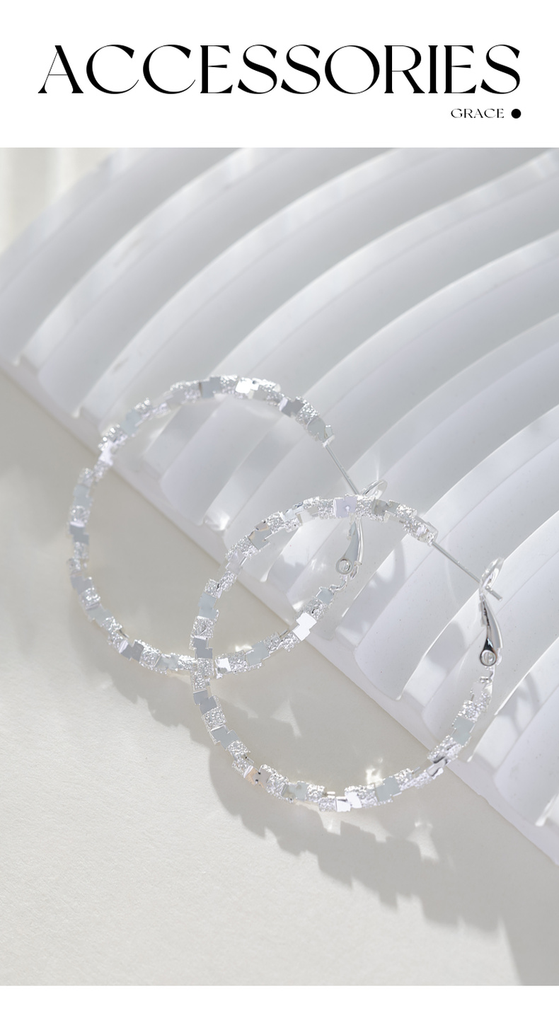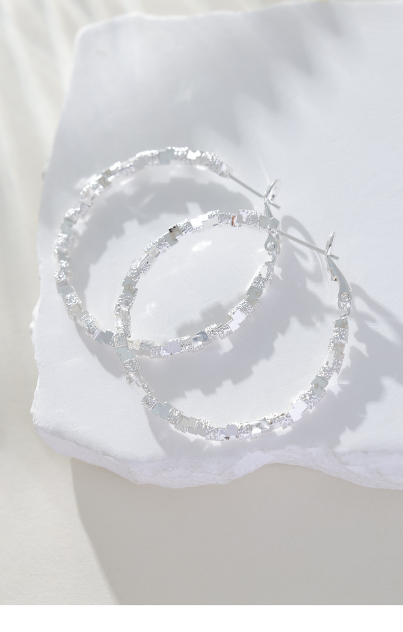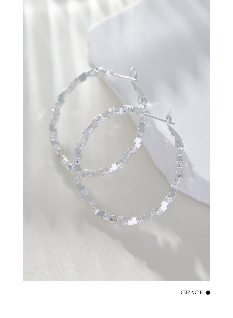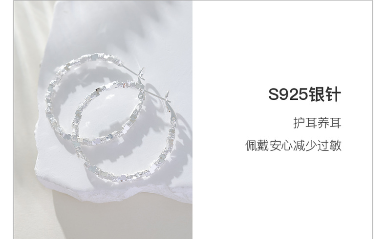 三彩2025新款碎银大圈耳环锤纹简约立体艺术现代通勤个性女