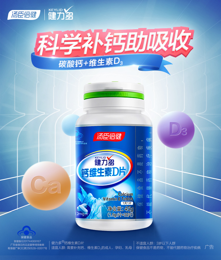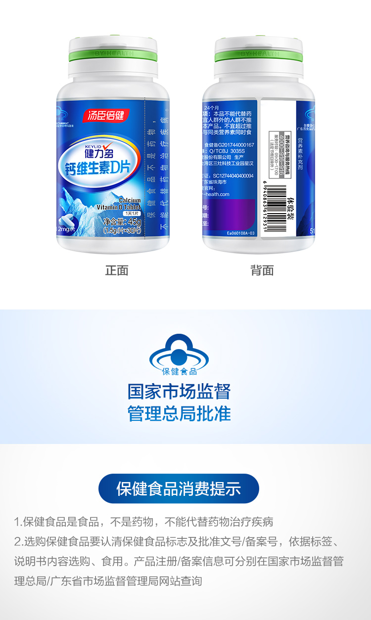 健力多钙维生素D片30片*4瓶套装