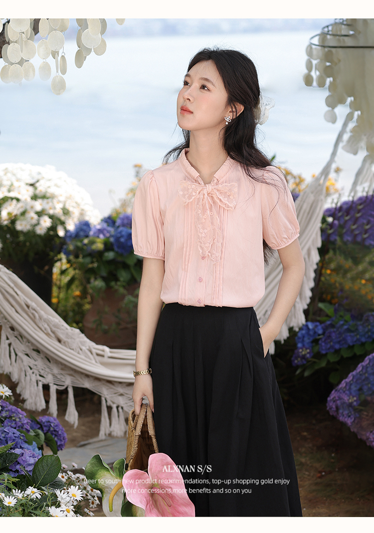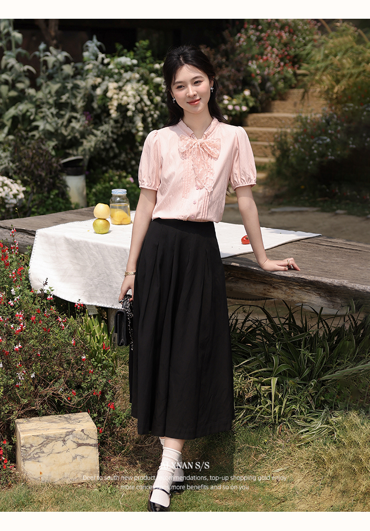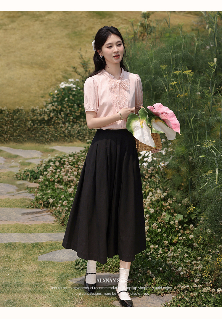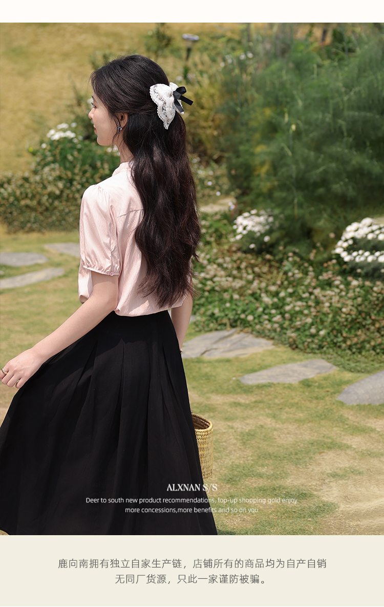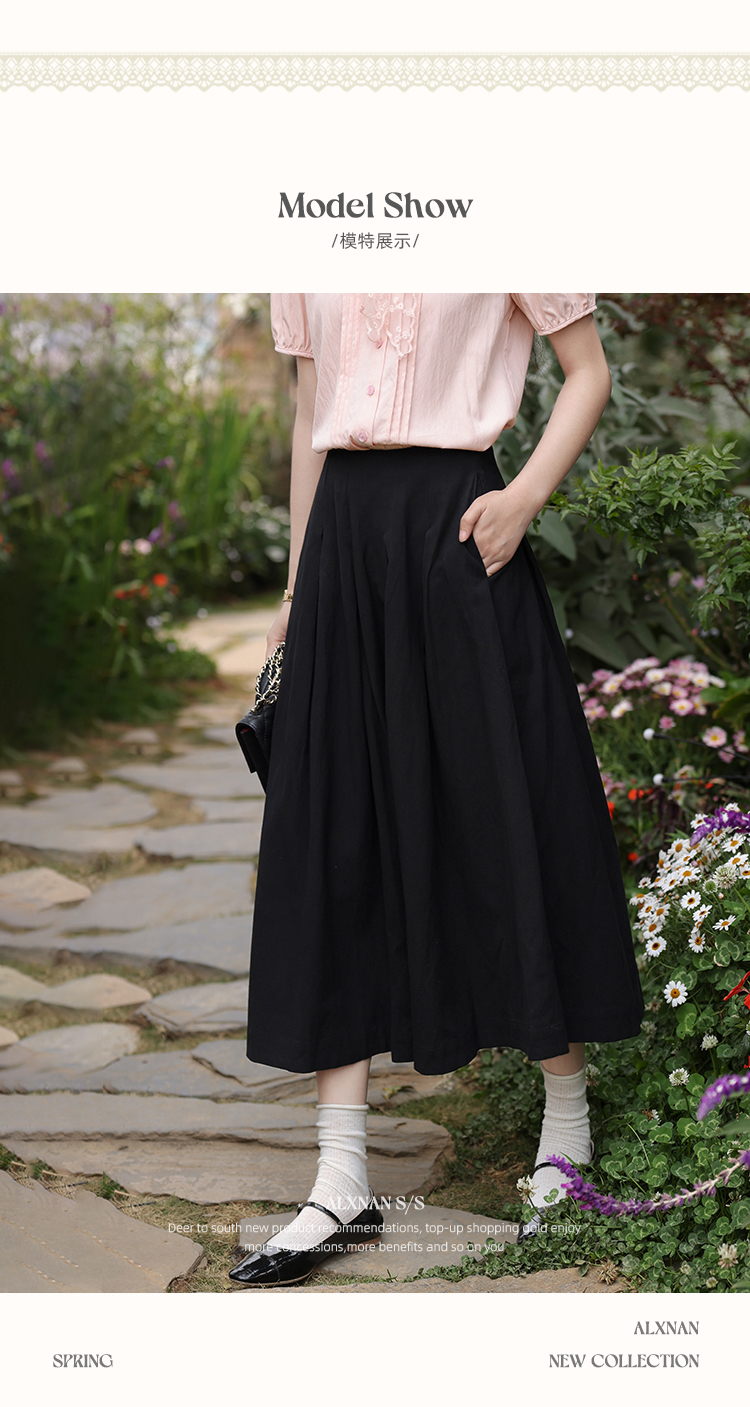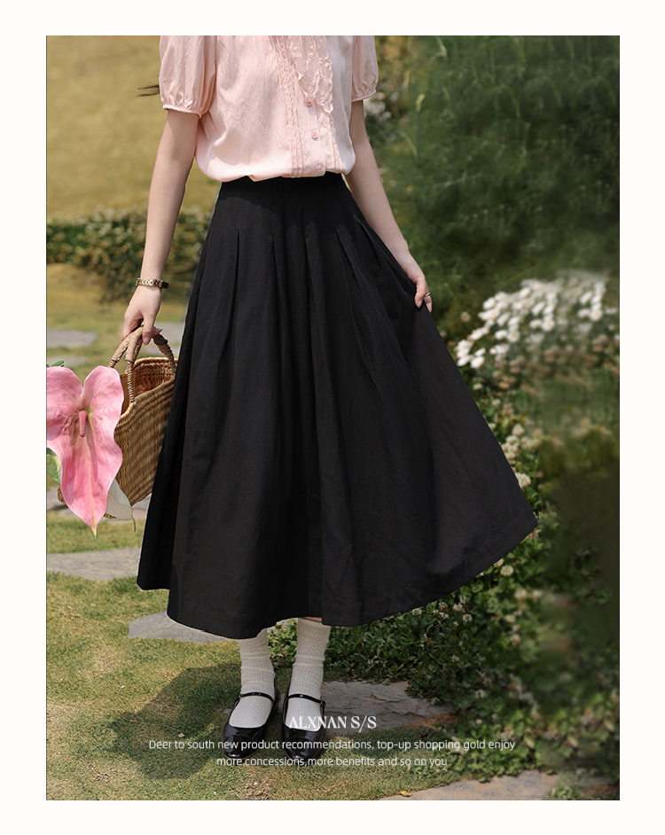 鹿向南「蜜桃乌龙」黑色高腰显瘦A字半身裙夏季新款大摆褶皱裙女L55166