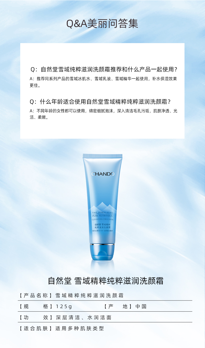 自然堂雪域精粹纯粹滋润洗颜霜125g