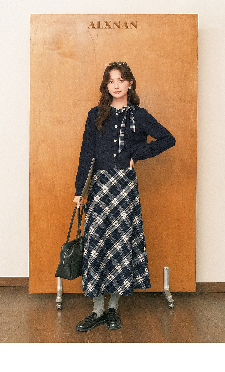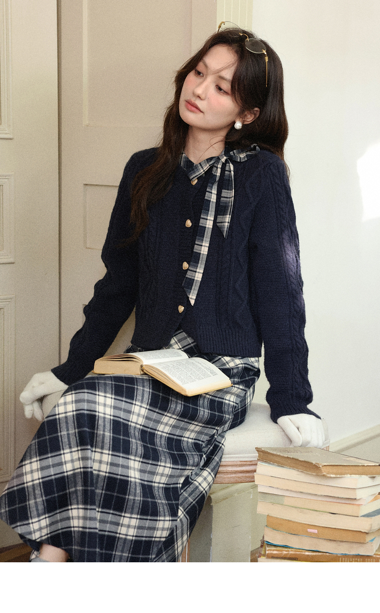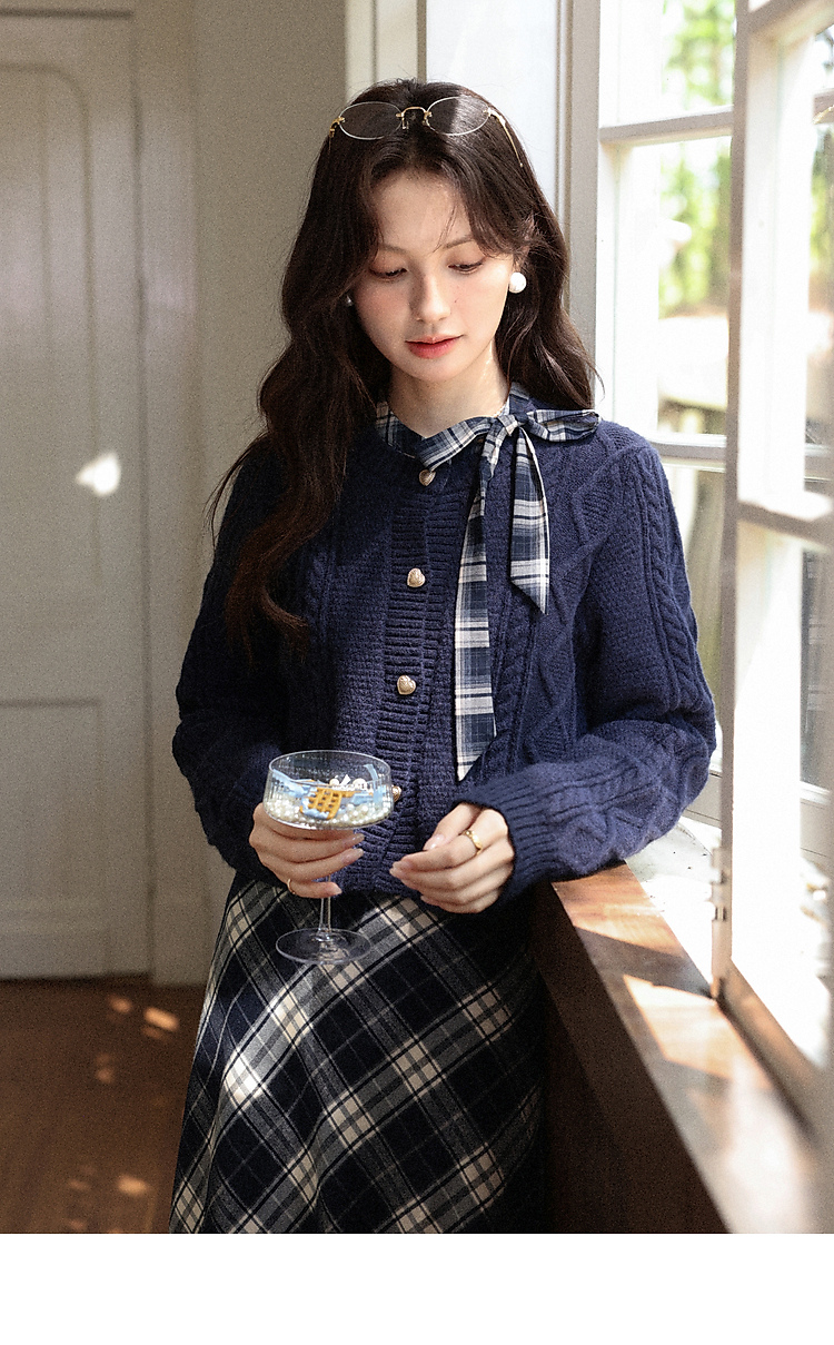鹿向南「绒冬格调」蓝色圆领法长袖式针织开衫秋冬外搭温柔毛衣女DYL662051