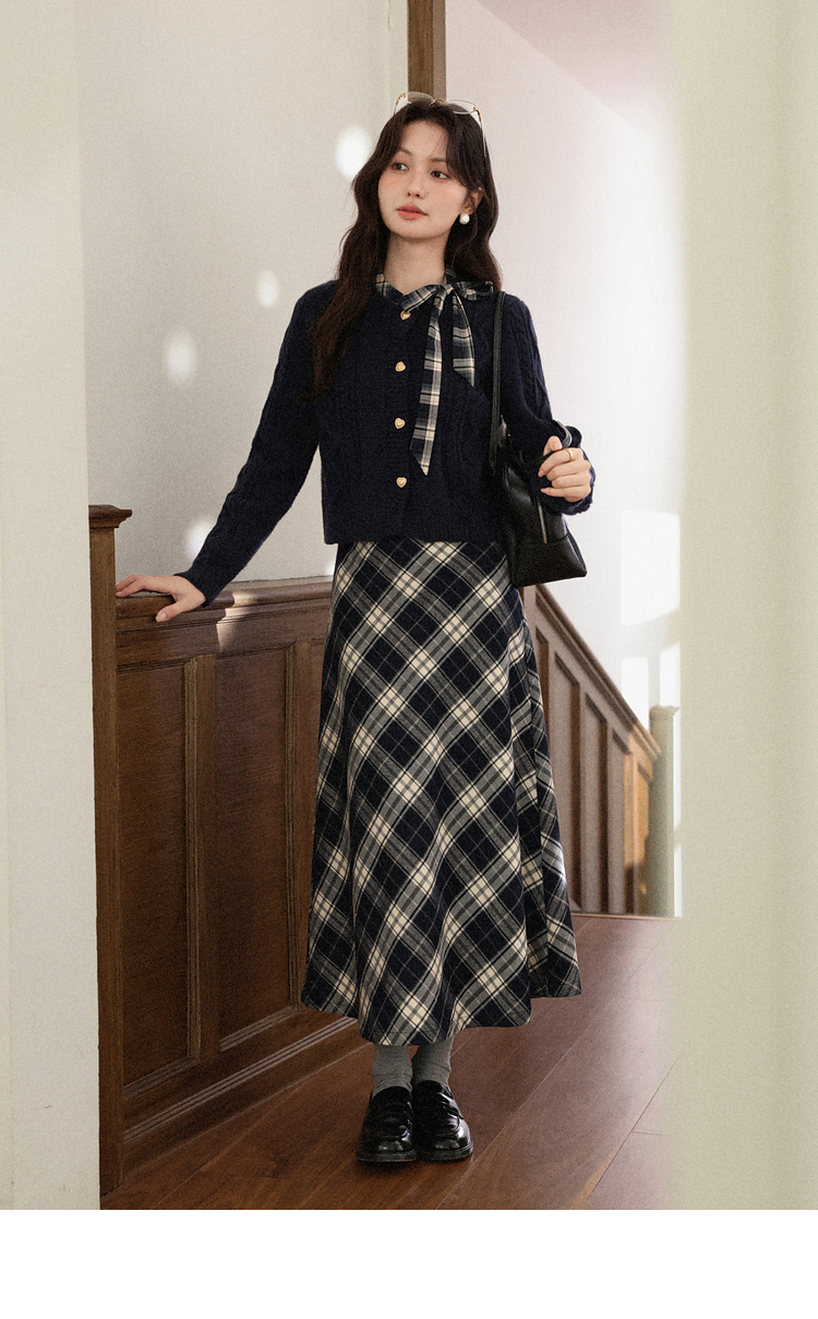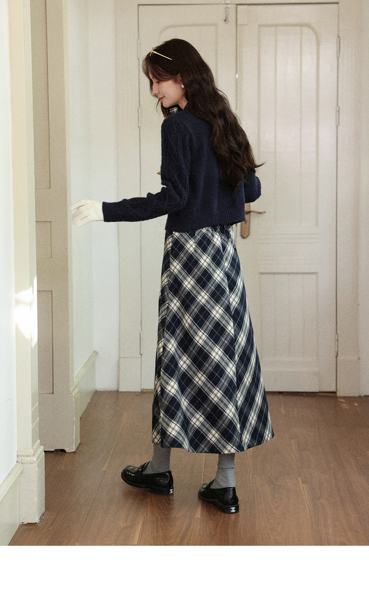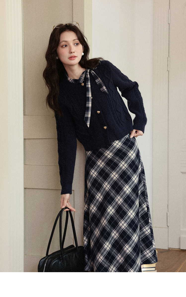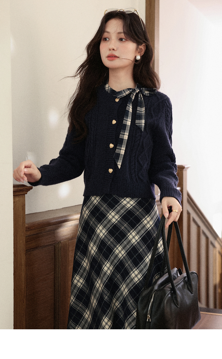 鹿向南「绒冬格调」蓝色圆领法长袖式针织开衫秋冬外搭温柔毛衣女DYL662051