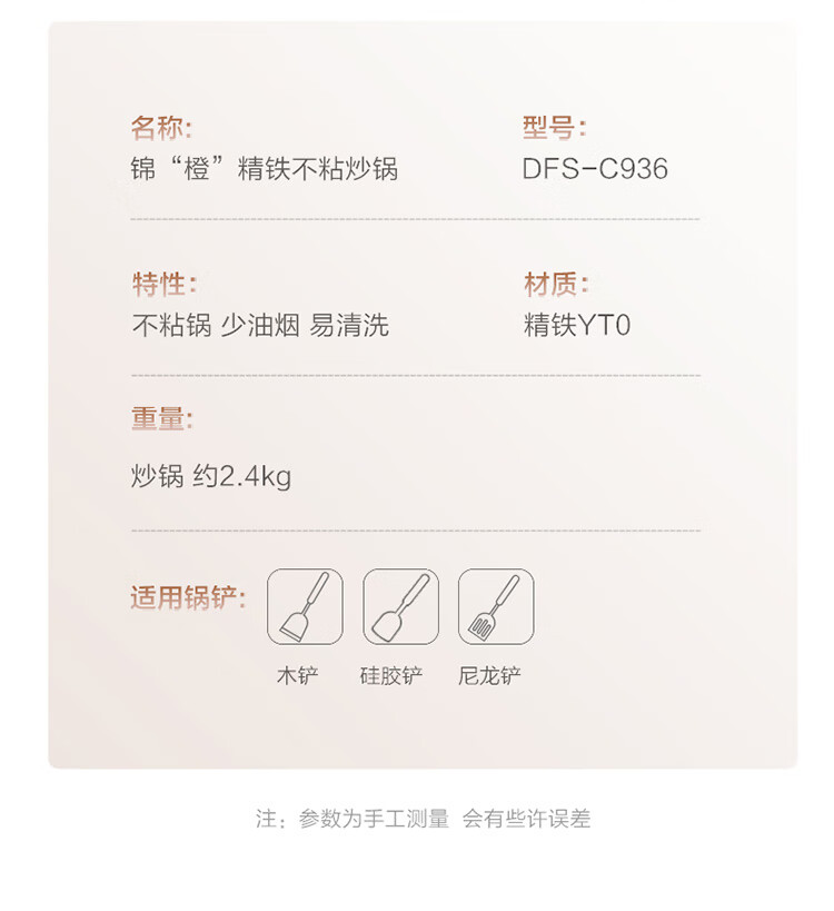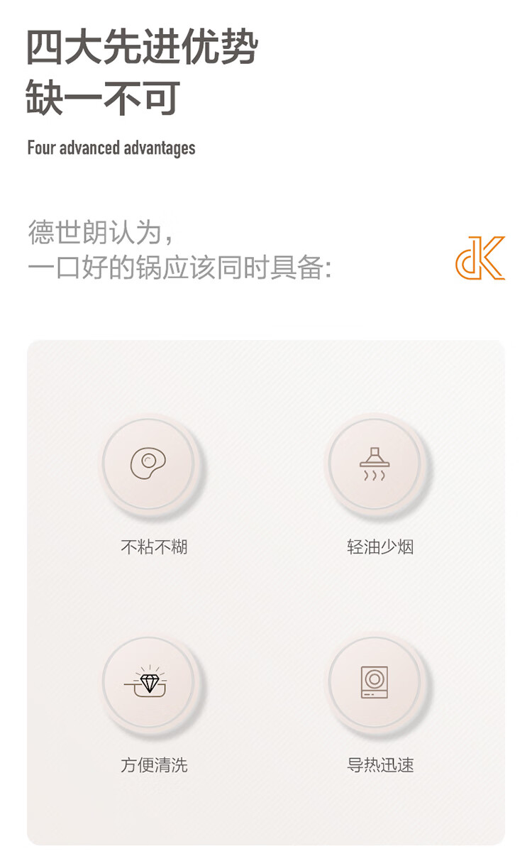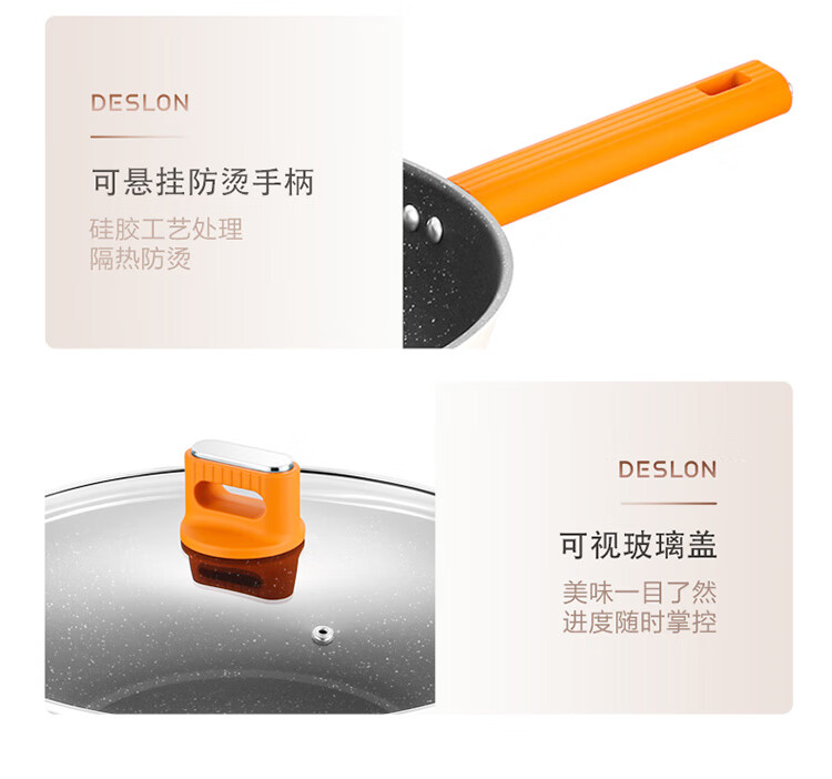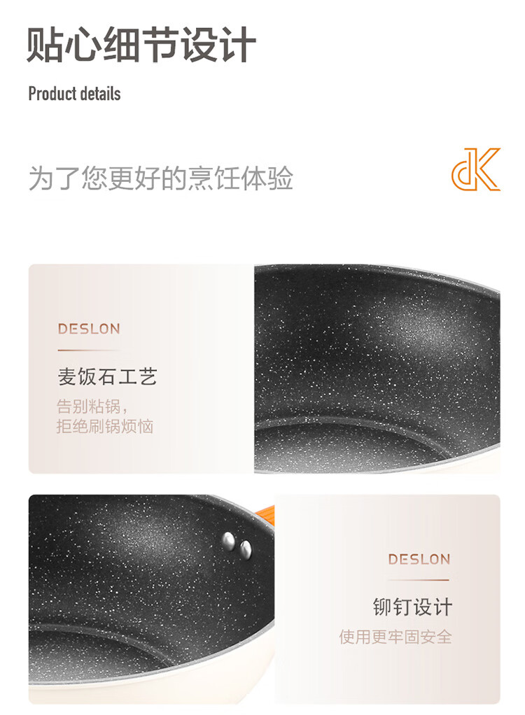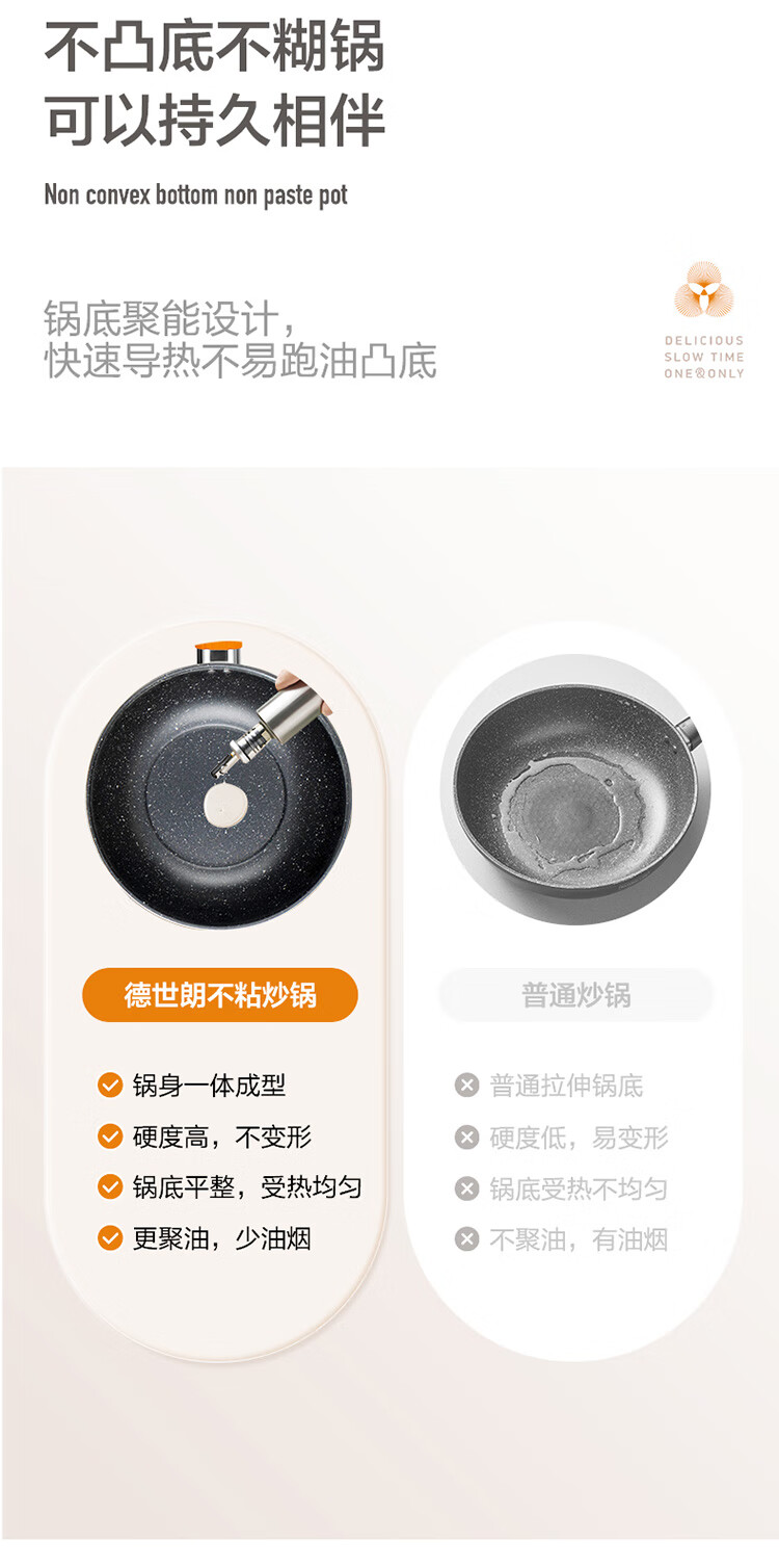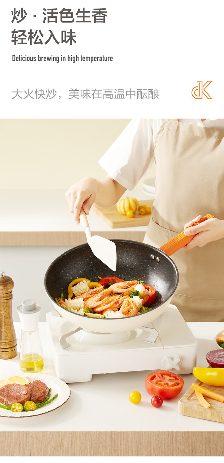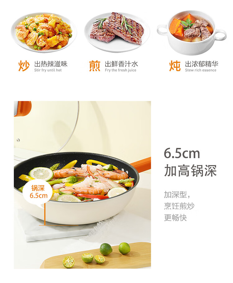 德世朗锦“橙”精铁不粘炒锅30cm米白色