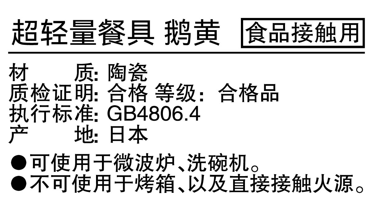 日本制超轻量餐具 鹅黄 11.4cm超轻量饭碗/12cm超轻量小碗