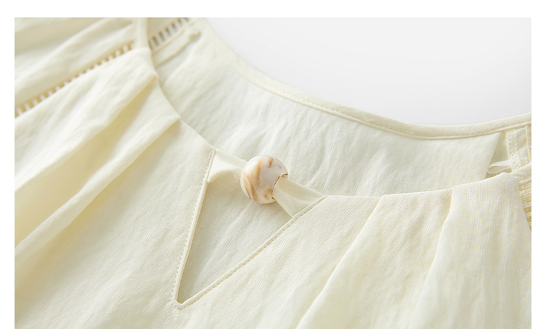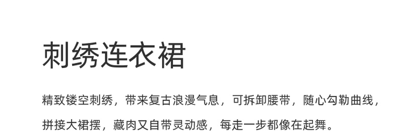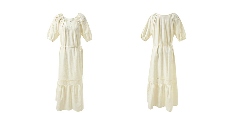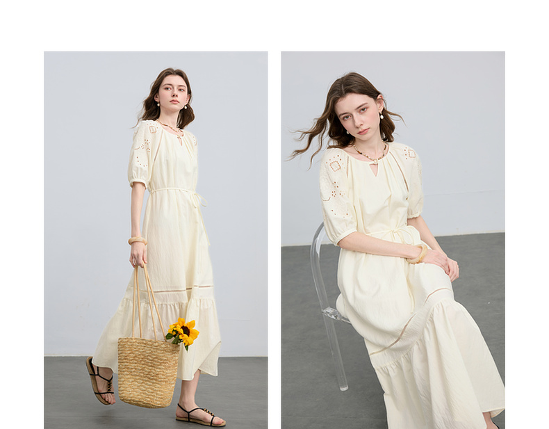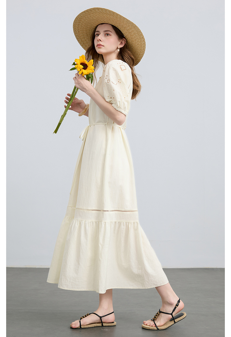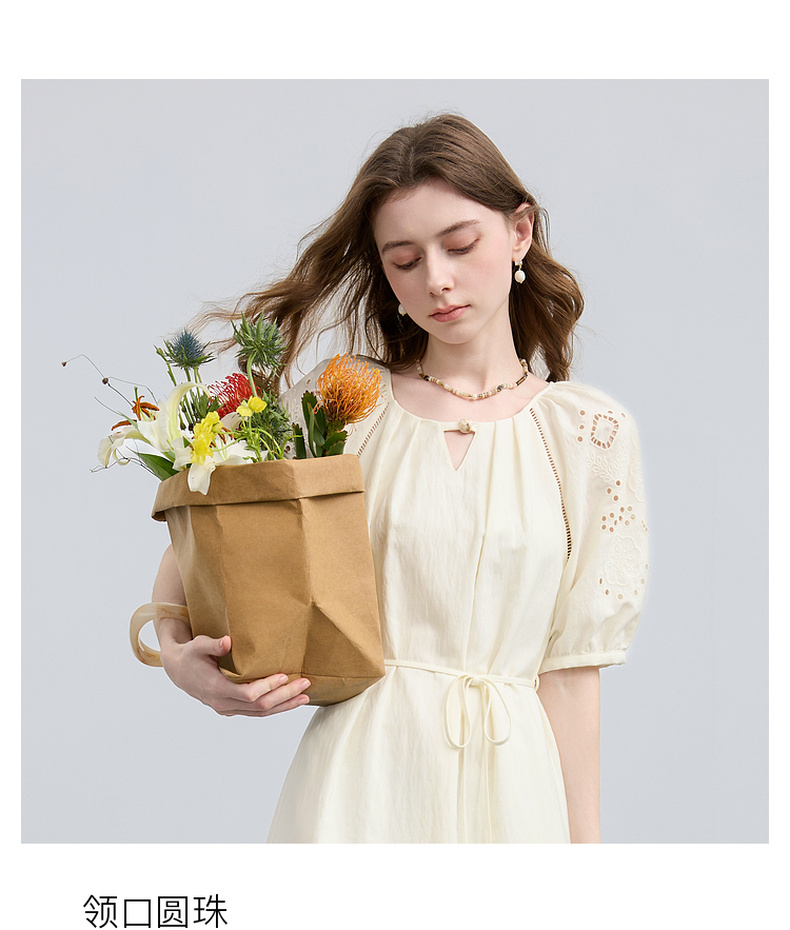 三彩2025夏季新款镂空刺绣连衣裙圆领灯笼袖A字裙宽松长裙M