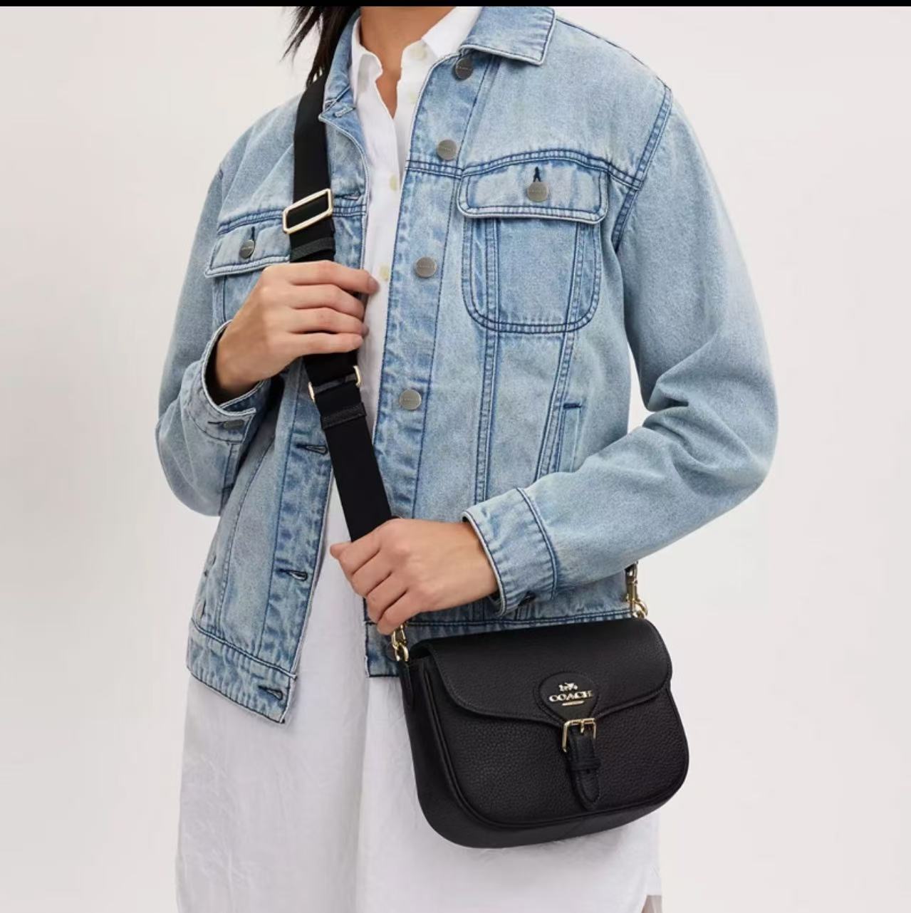 COACH蔻驰 Amelia Saddle BAG 23 纯色经典简约Logo徽标 柔软卵石纹皮革 马鞍包单肩斜挎包 中号 女款 黑色