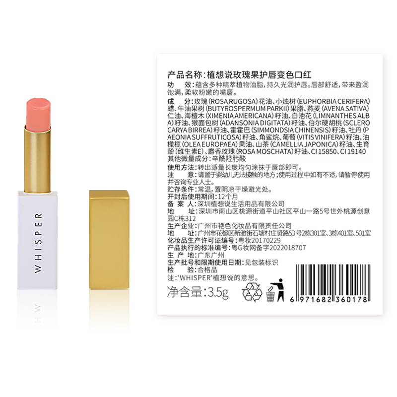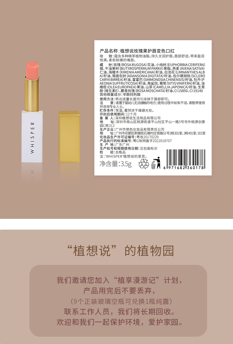 【千人千色 极润修护】植想说玫瑰果变色润唇口红 滋润修复孕妇可用、不沾杯健康气色润唇膏