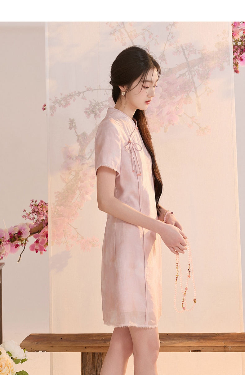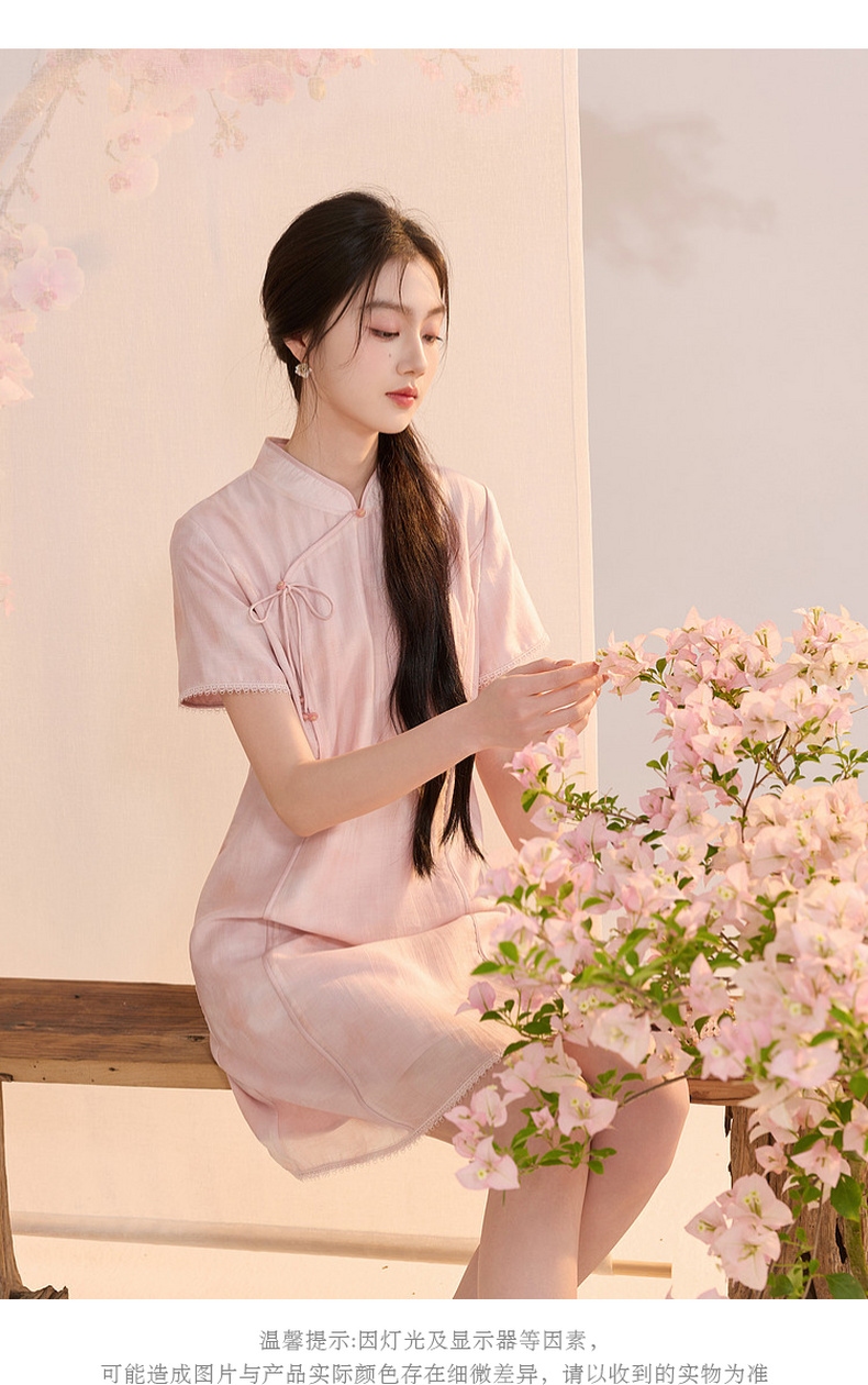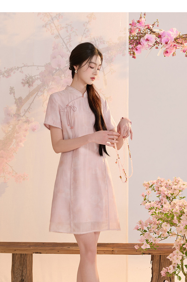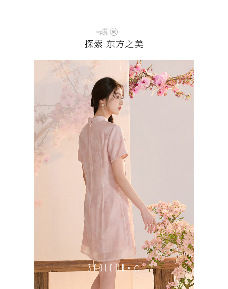 【倾国倾城】三彩2026夏季新款莱赛尔印花连衣裙新中式立领短裙C