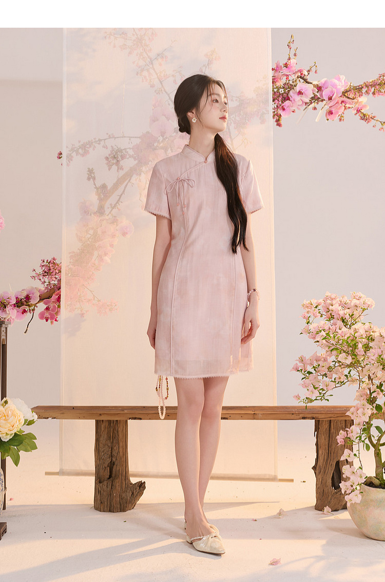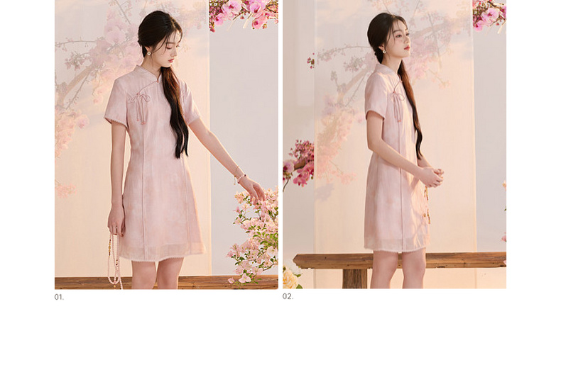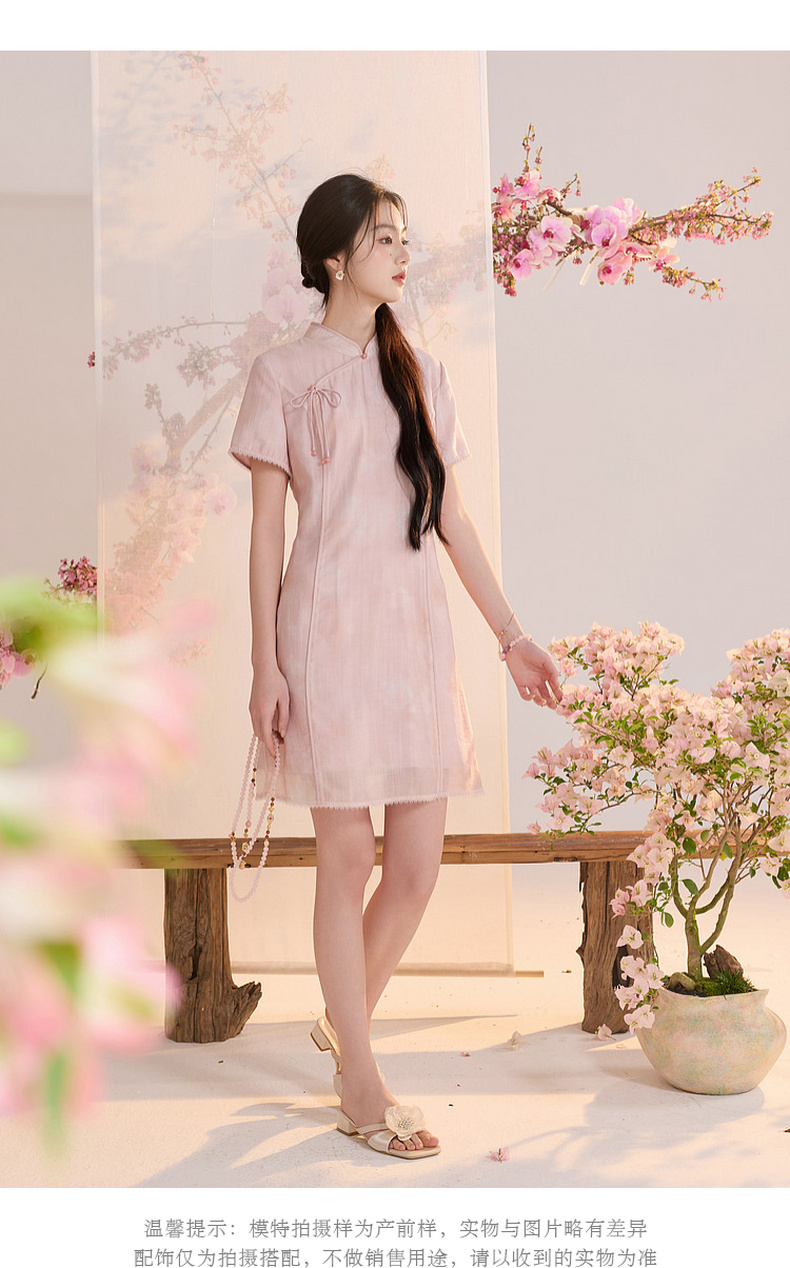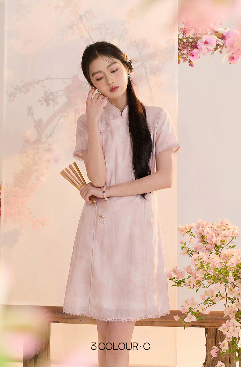【倾国倾城】三彩2026夏季新款莱赛尔印花连衣裙新中式立领短裙C