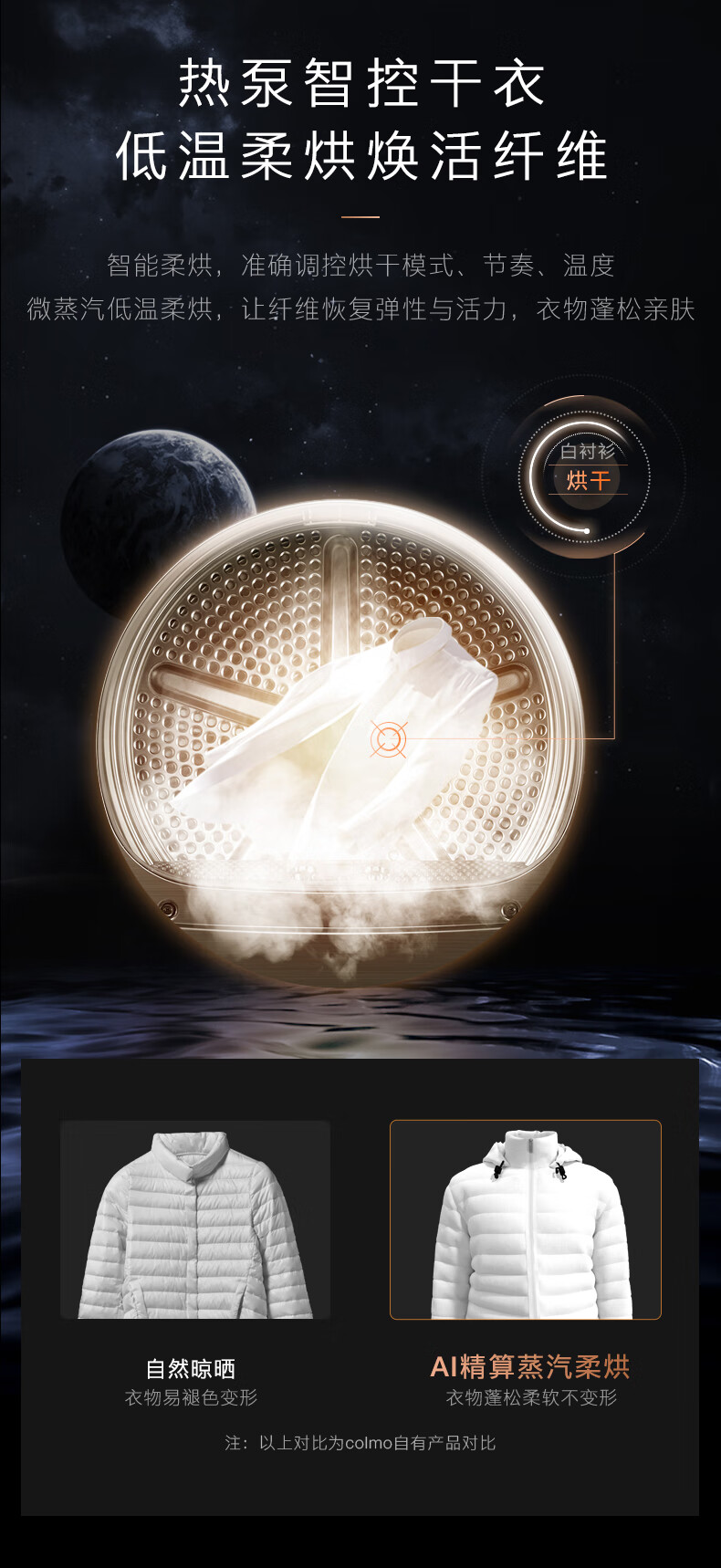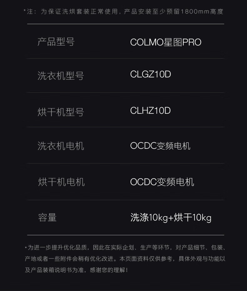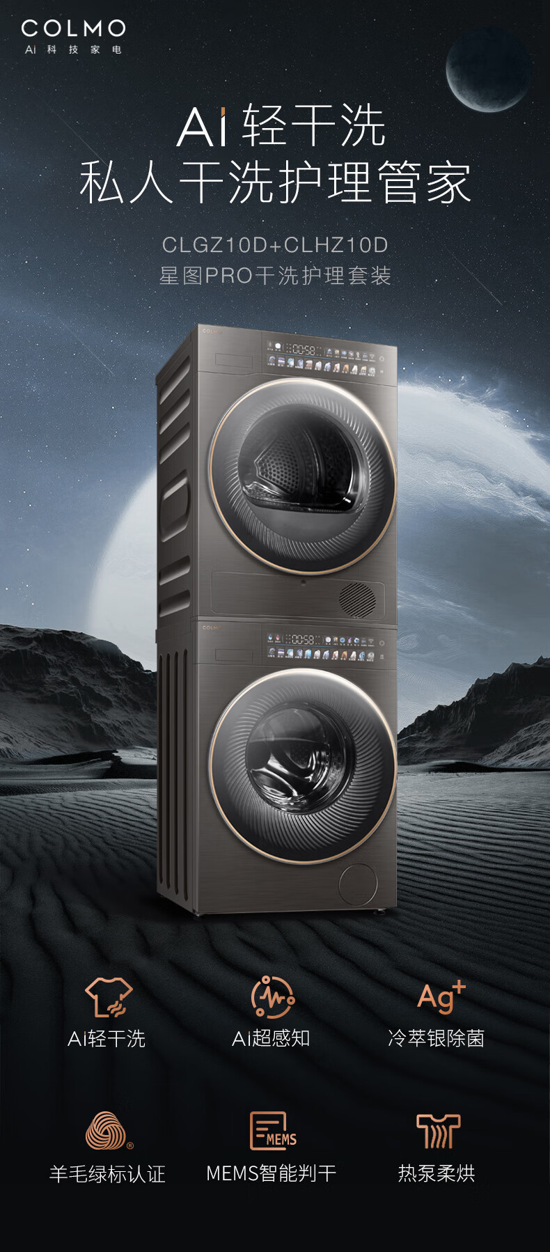 COLMO 全自动智能投放滚筒洗衣机变频热泵式烘干机 10KG洗烘套装家用 紫外线除菌 星图PRO CLGZ10D+CLHZ10D