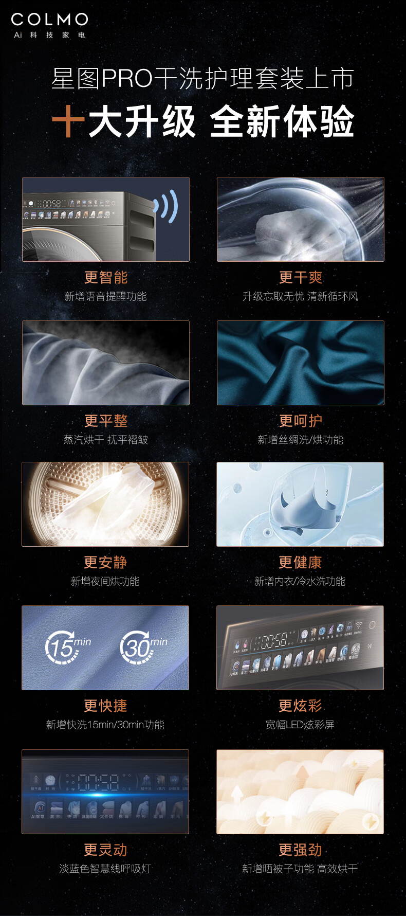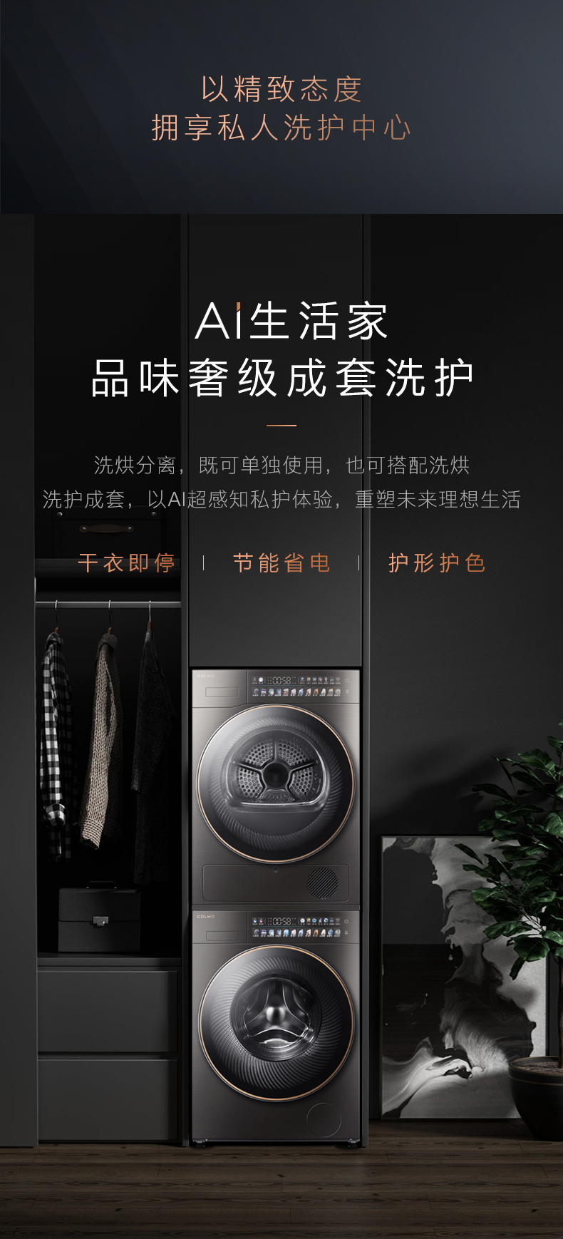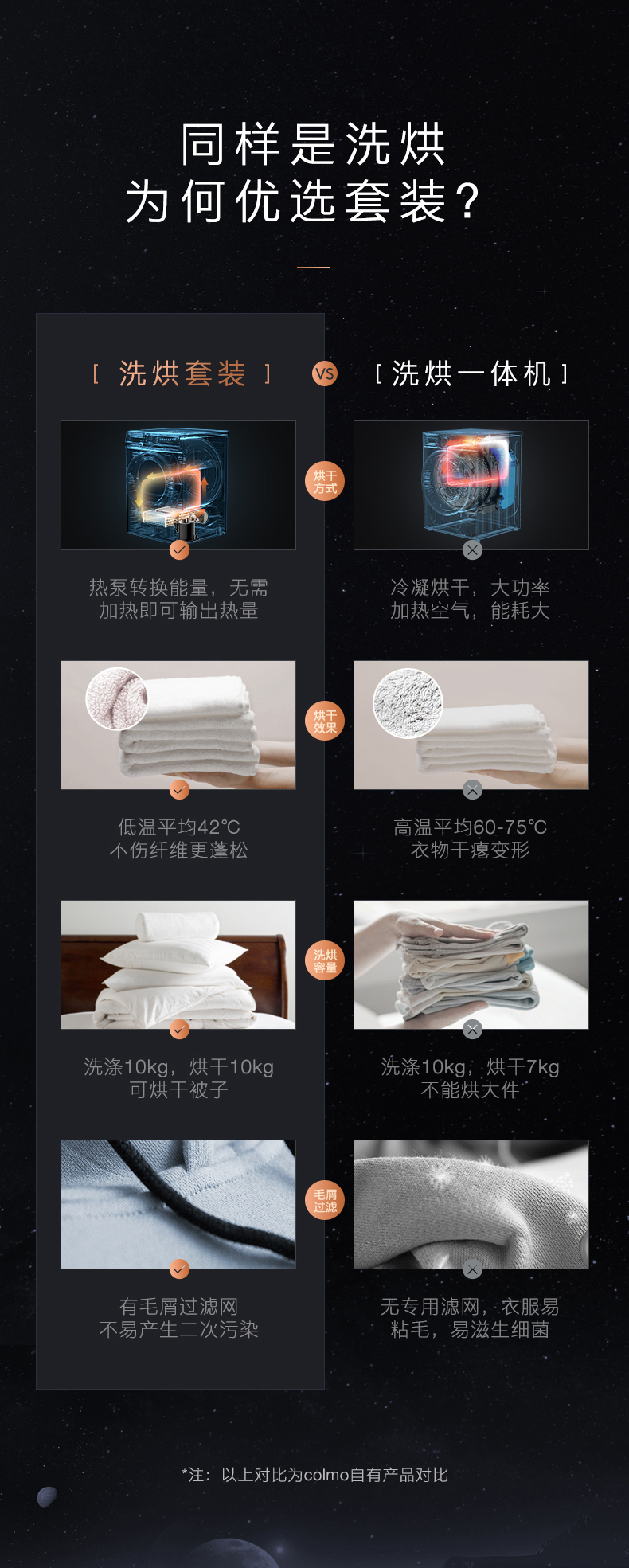 COLMO 全自动智能投放滚筒洗衣机变频热泵式烘干机 10KG洗烘套装家用 紫外线除菌 星图PRO CLGZ10D+CLHZ10D