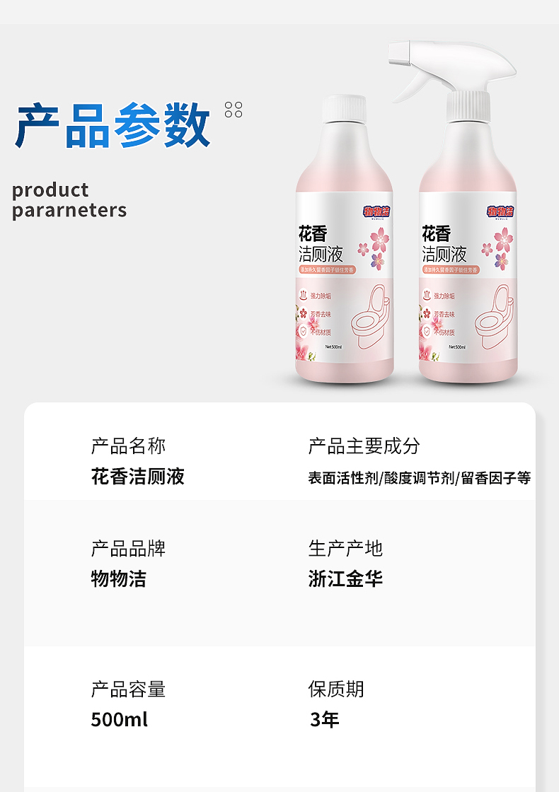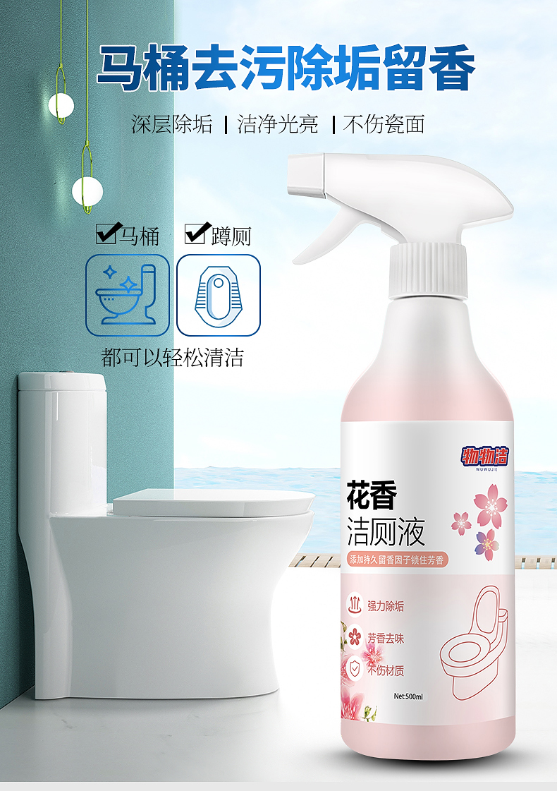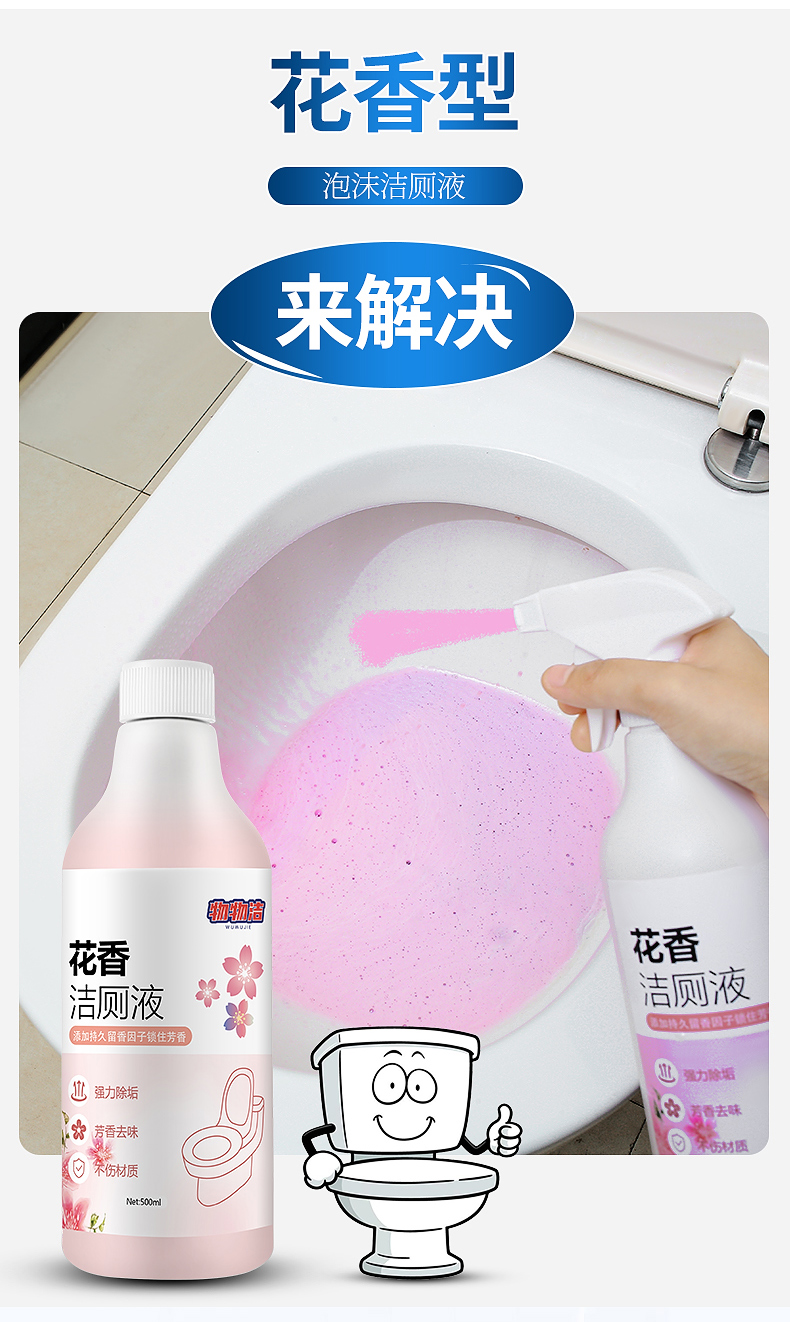 物物洁花香洁厕液 马桶清洁剂洁厕灵厕所除臭剂洁厕宝芳香泡沫型除臭去黄渍尿垢洁厕剂500ml/瓶