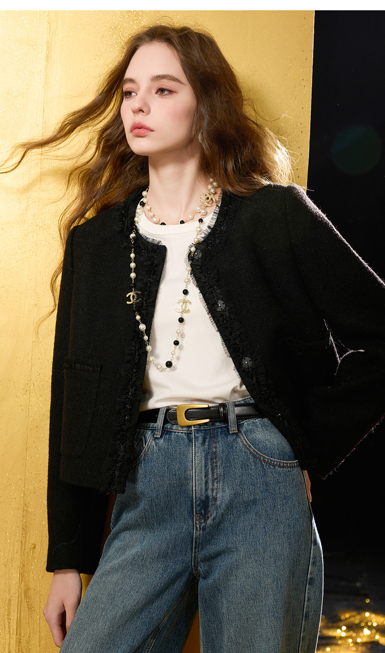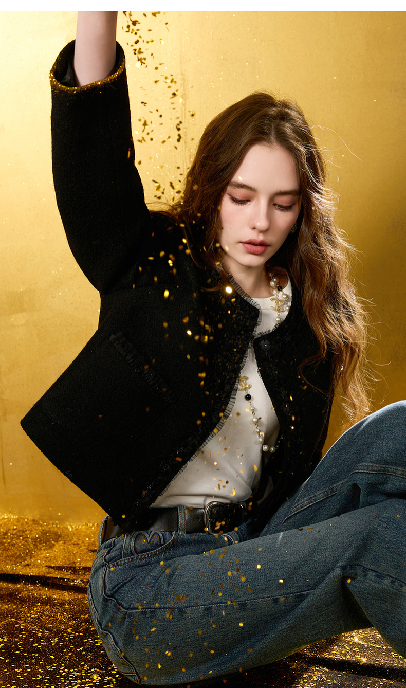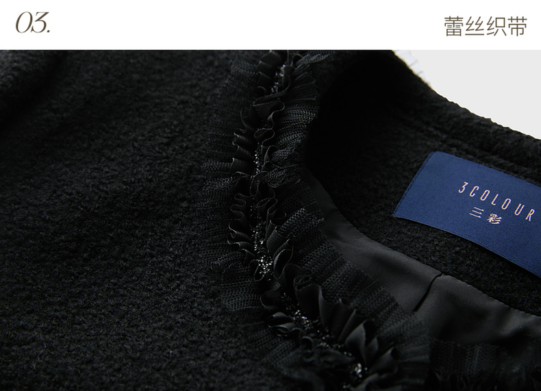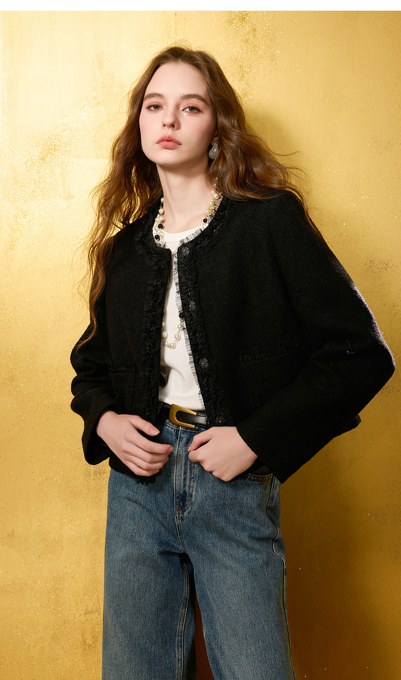【绵羊毛】三彩2025冬季新款香风呢大衣短款单面呢外套M