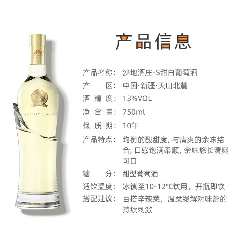 【SANDY LAND·大美新疆】S雷司令甜白葡萄酒,恰似天山融水般清冽甘甜,成熟的核果风味在口中舒展