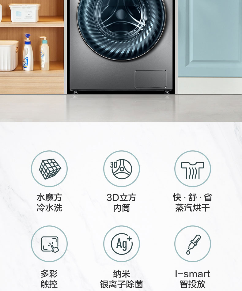 水魔方小天鹅10KG滚筒洗衣家用全自动洗烘一体TD100VCT815MIY
