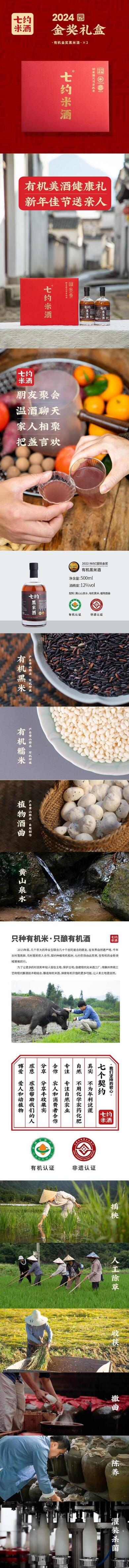 【七约米酒】七约梦徽州金奖礼盒(有机金奖黑米酒500ml*2)