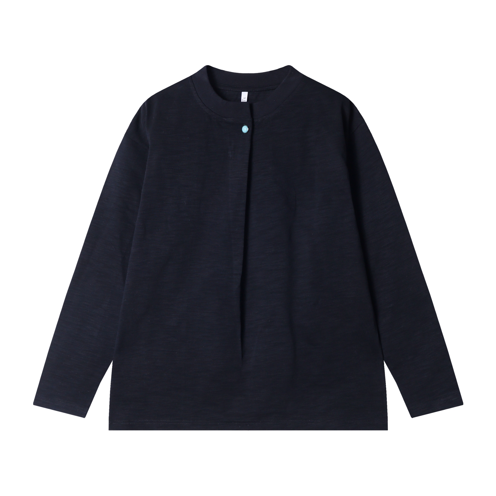 T2223秋冬季新款时尚个性圆领纽扣纯色设计感小众设计百搭宽松休闲上衣
