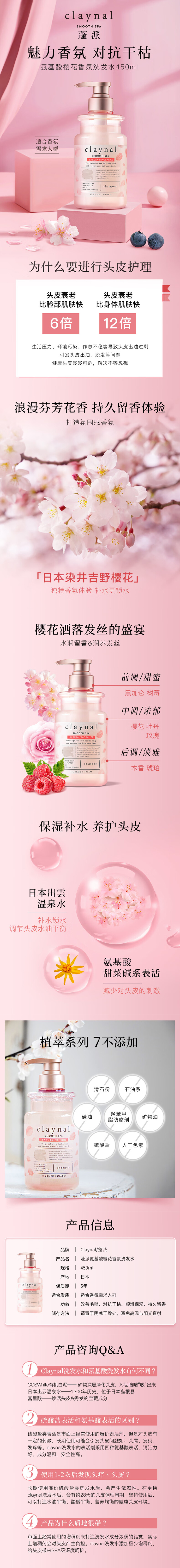 蓬派(CLAYNAL)洗发水滋润呵护樱花香氛洗头膏450ml (1125)