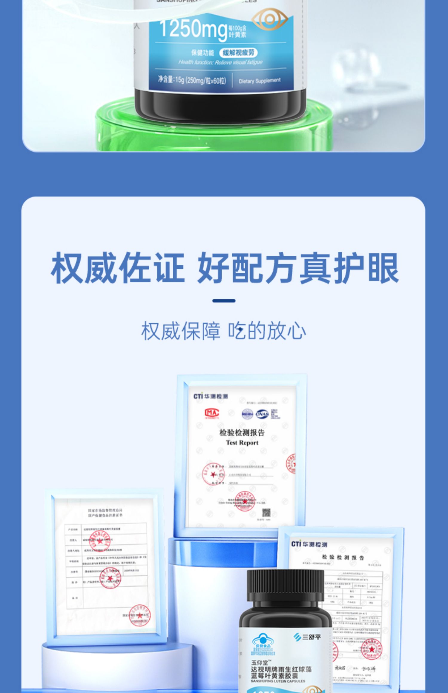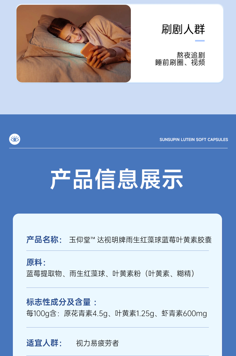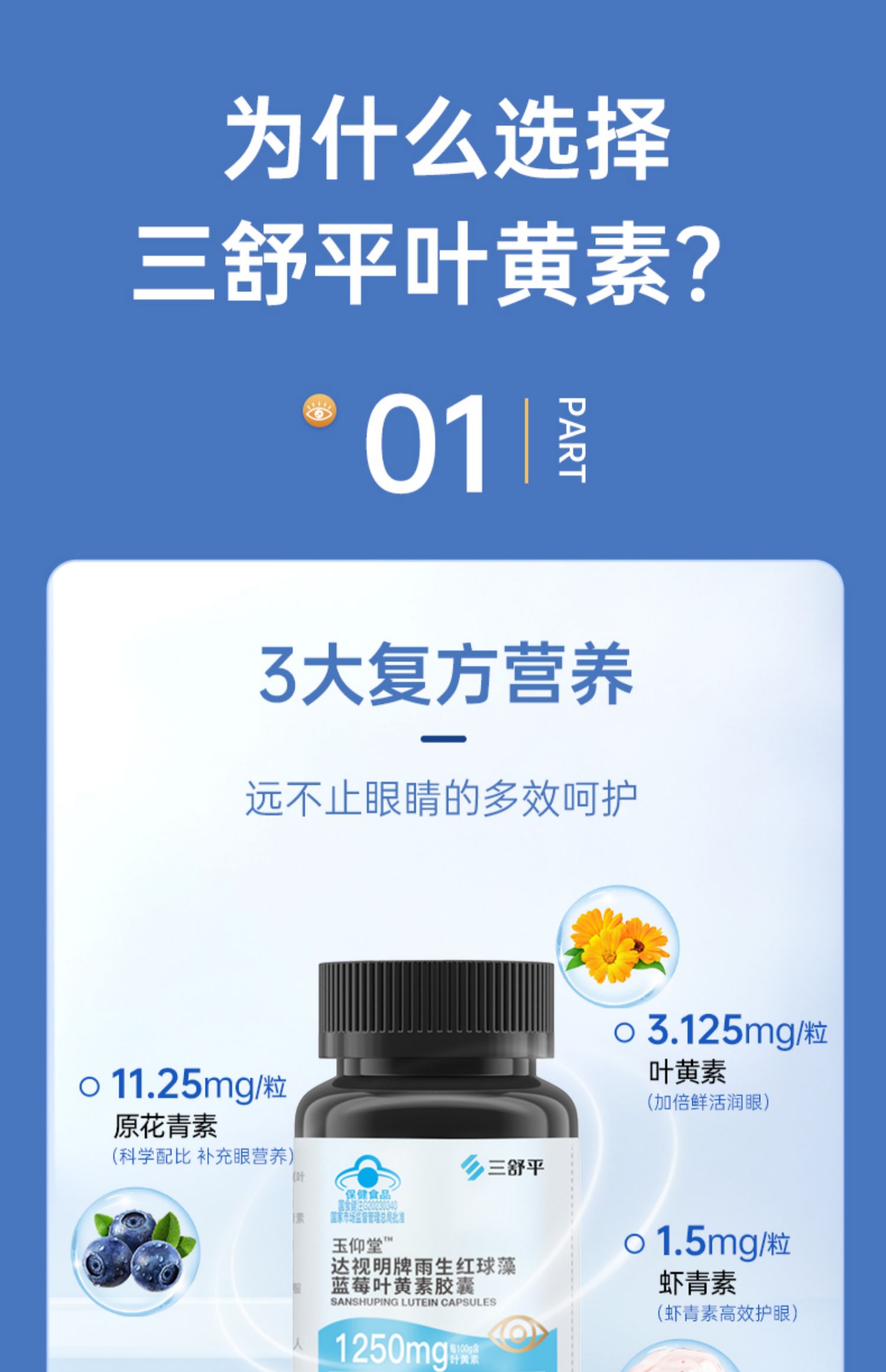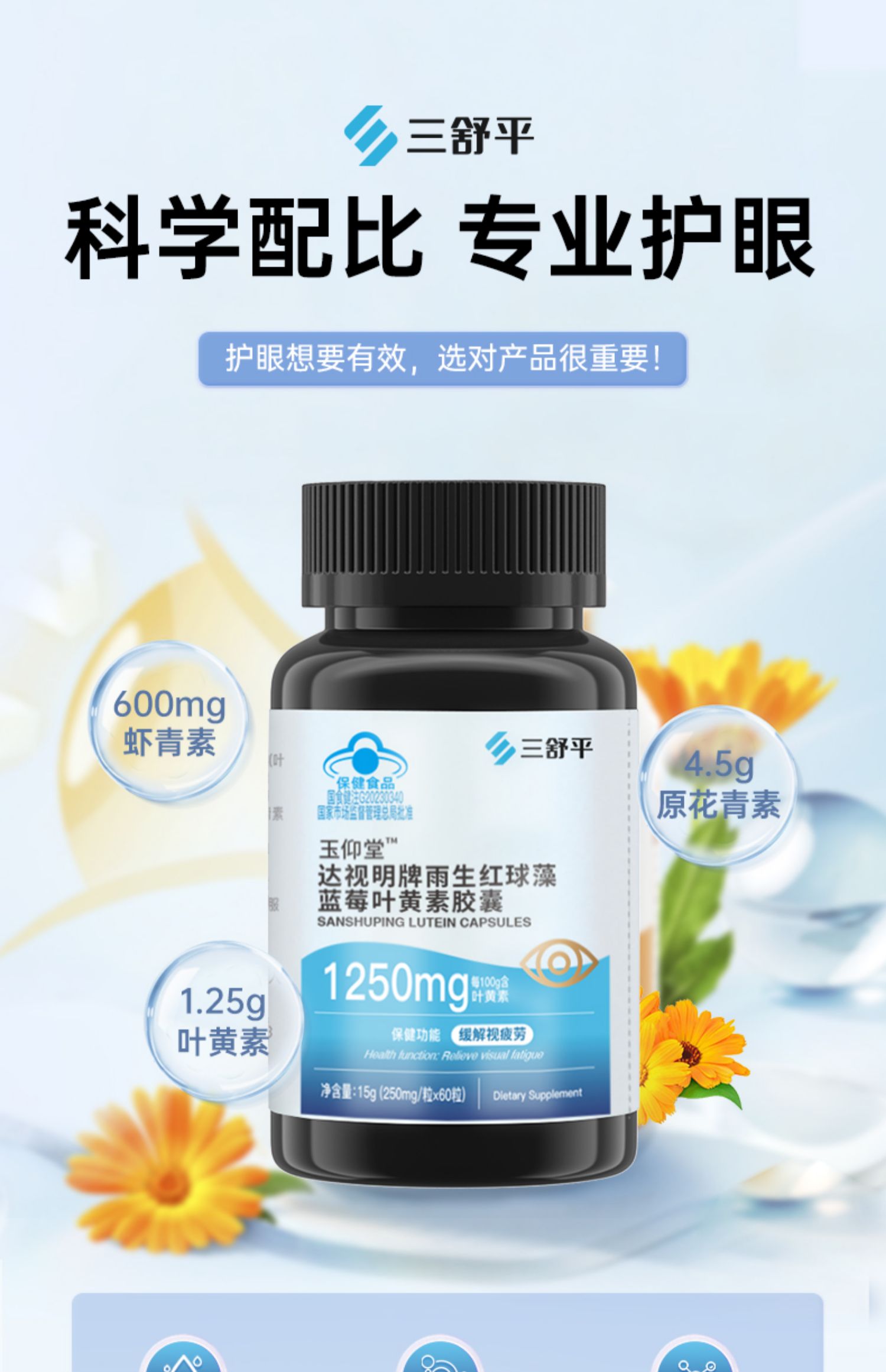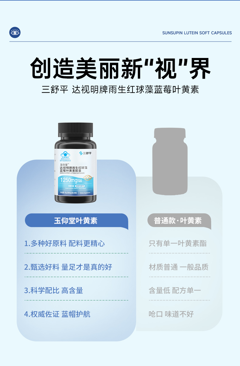 玉仰堂叶黄素三舒平古正和YYT叶黄素达视明牌雨生红球藻蓝莓胶囊