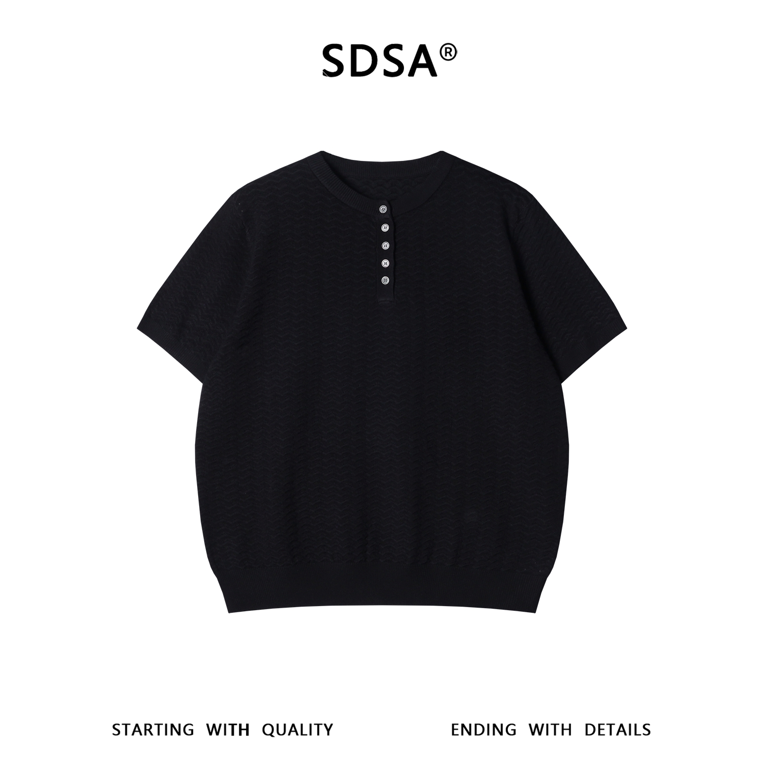 SDSA男装2026新款高贵轻奢提花肌理亨利领短袖针织衫宽松复古上衣