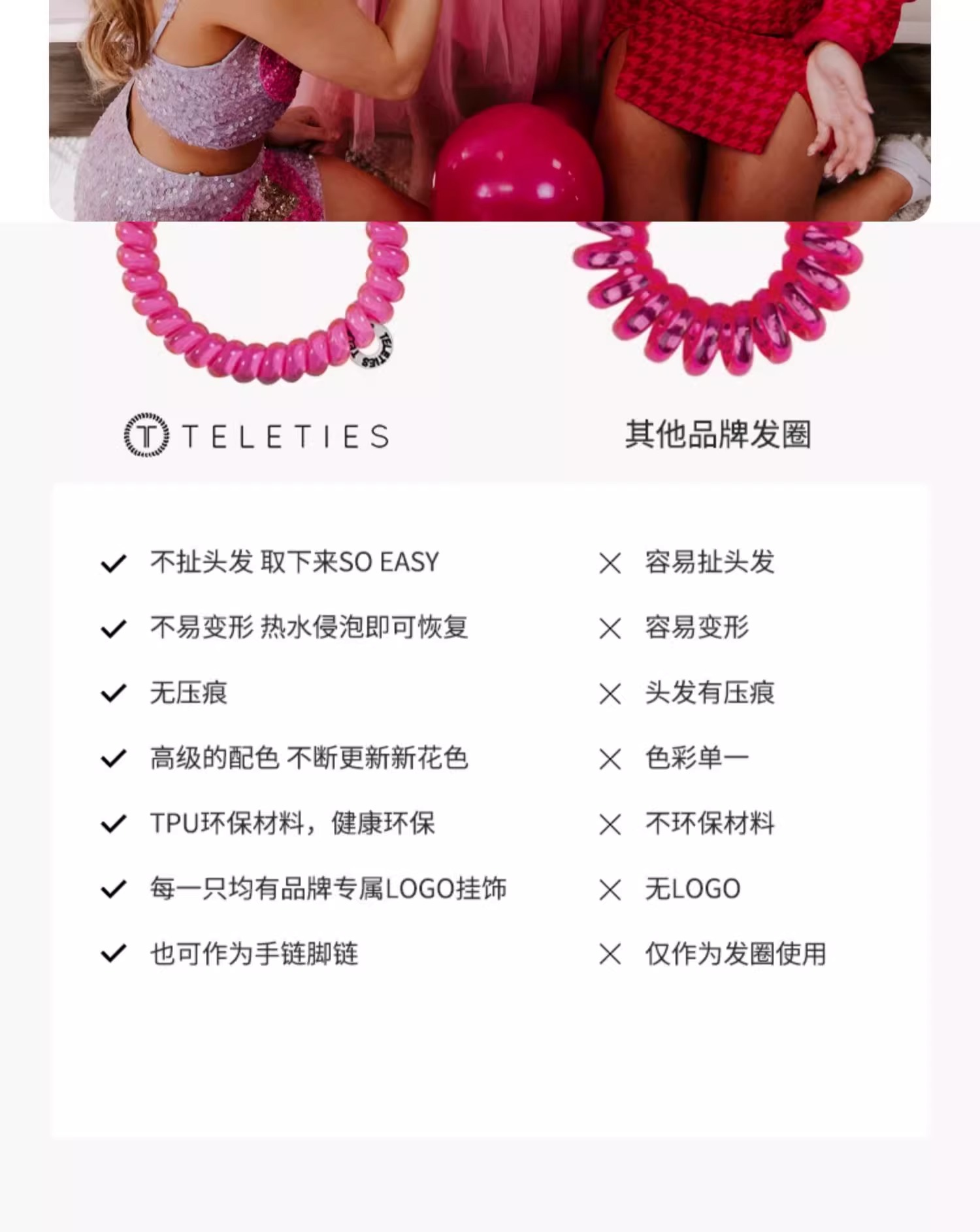 【美国品牌】TELETIES瑜伽运动发箍TT圈电话线发圈手环多用无痕环保优雅