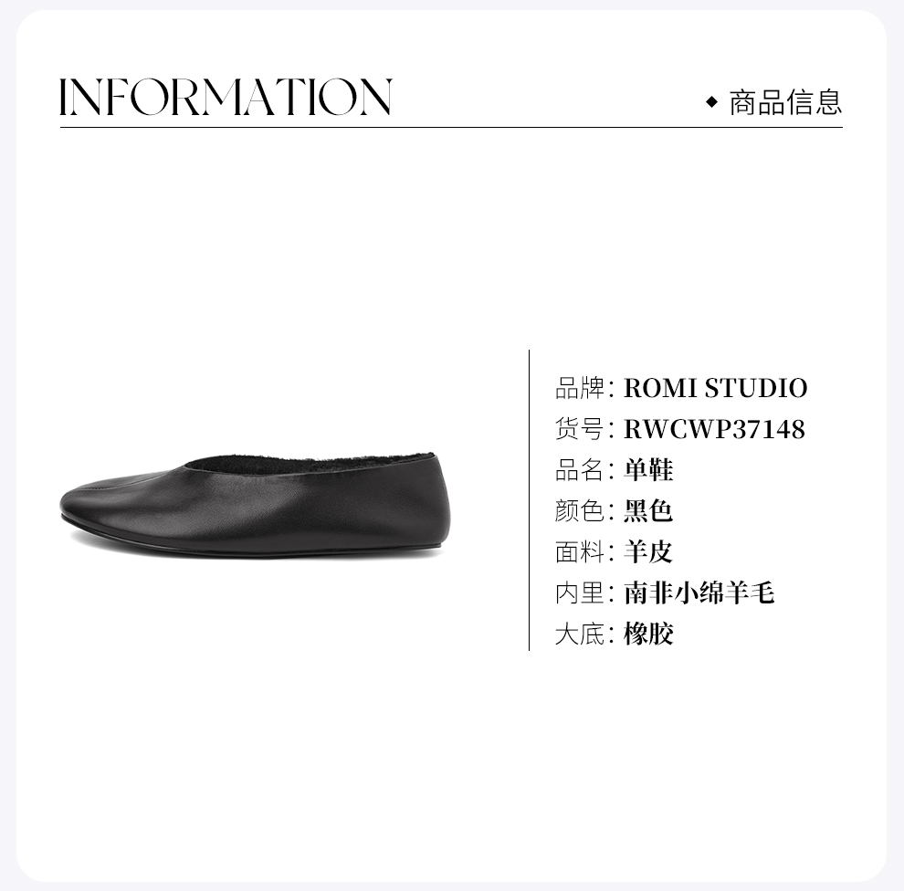 ROMI STUDIO“软底赤足”进口胎牛皮南非绵羊毛平底单鞋RWCWP37148