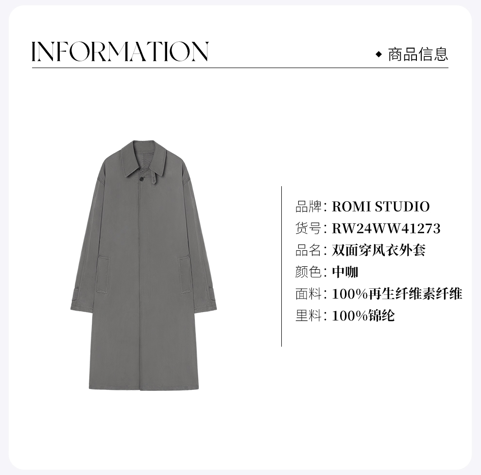 ROMI STUDIO“松弛自在”铜氨丝双面穿宽松垂感风衣外套RW24WW41273