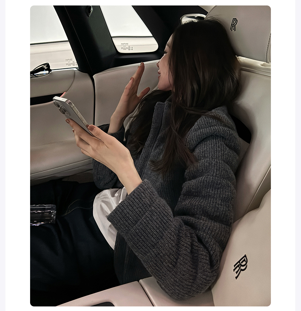 ROMI STUDIO“复古腔调”3针羊毛混纱牛角扣厚毛衣开衫RWCWST6681